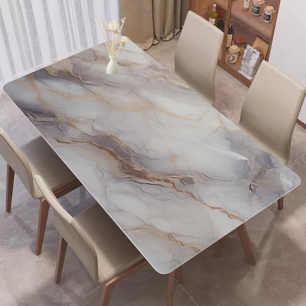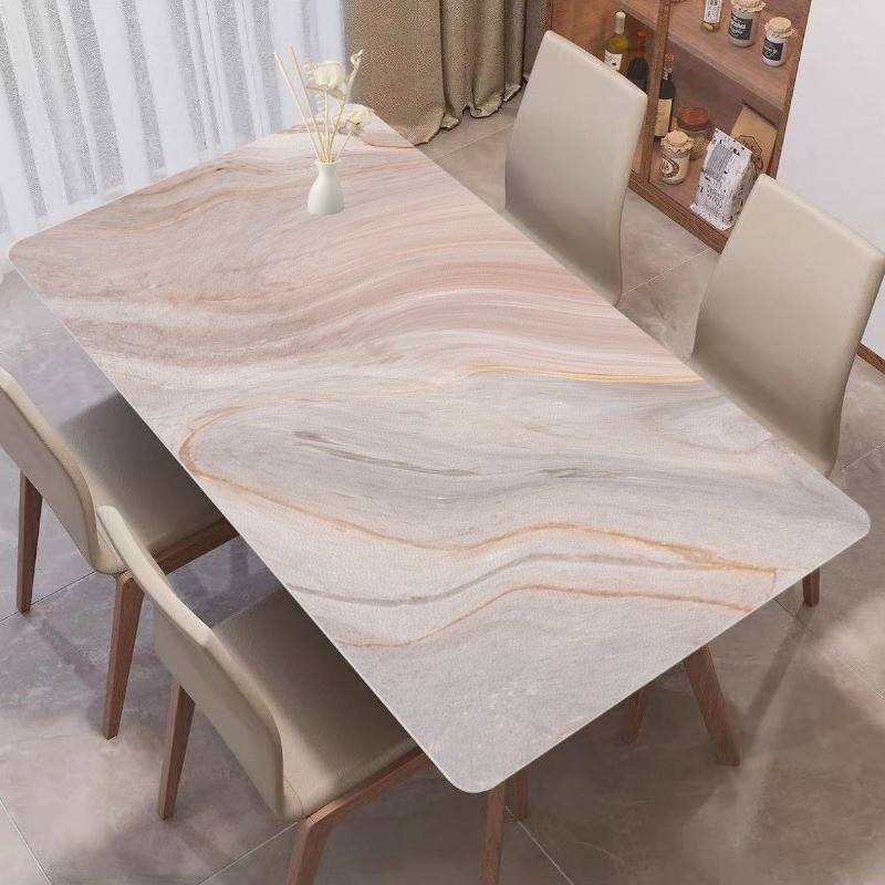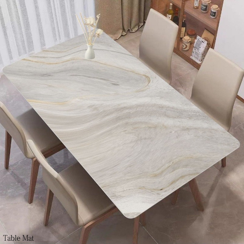 หินอ่อนเสื่อโต๊ะรับประทานอาหารแสงหรูหราระดับไฮเอนด์ผ้าปูโต๊ะกันน้ําและกันน้ํามันโต๊ะน้ําชาแผ่นป้องกันน้ําร้อนลวก