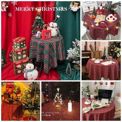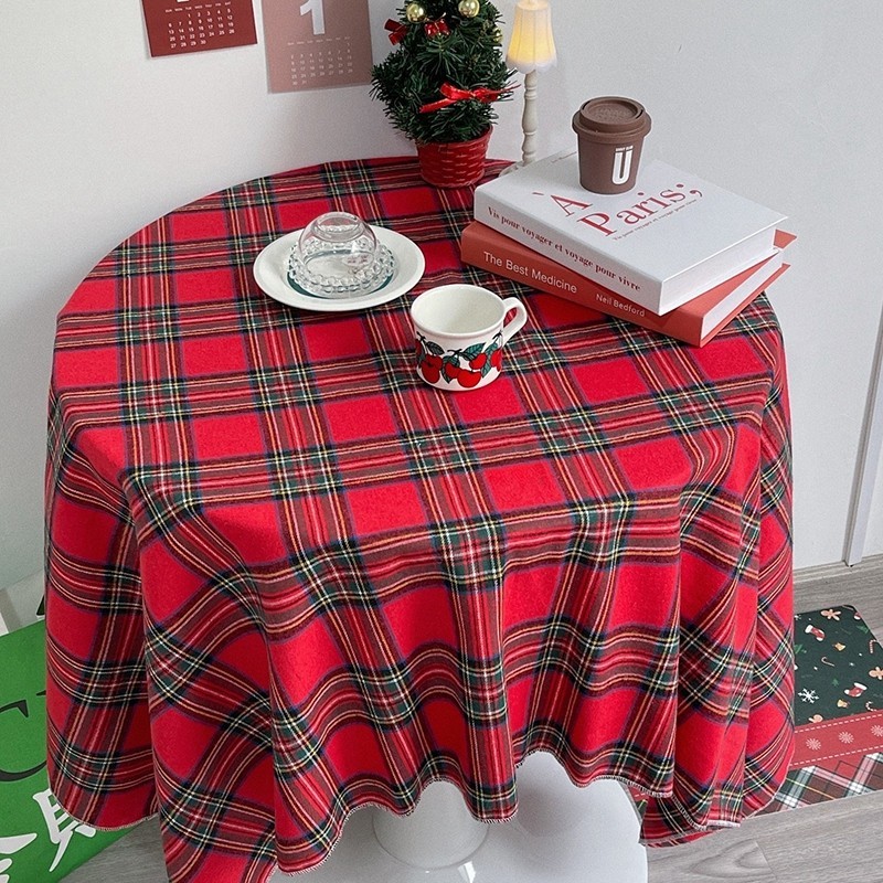 ลายสก๊อตคริสต์มาสผ้าปูโต๊ะตกแต่งโต๊ะและอุปกรณ์เสริมผ้าตารางอุปกรณ์ปาร์ตี้คริสต์มาสปีใหม่ผ้าคลุมโต๊ะอาหาร