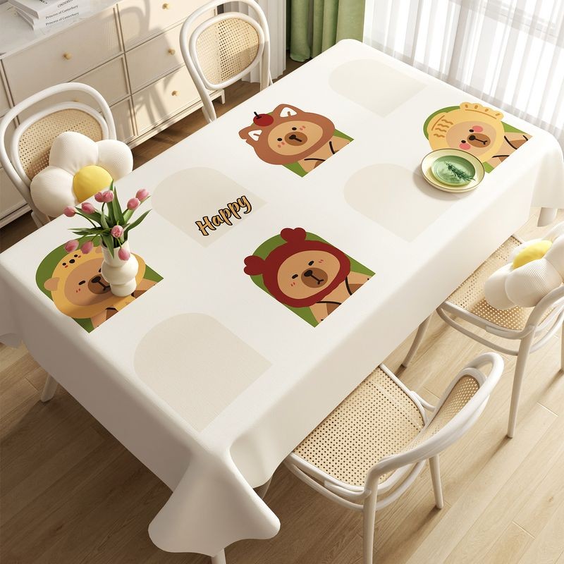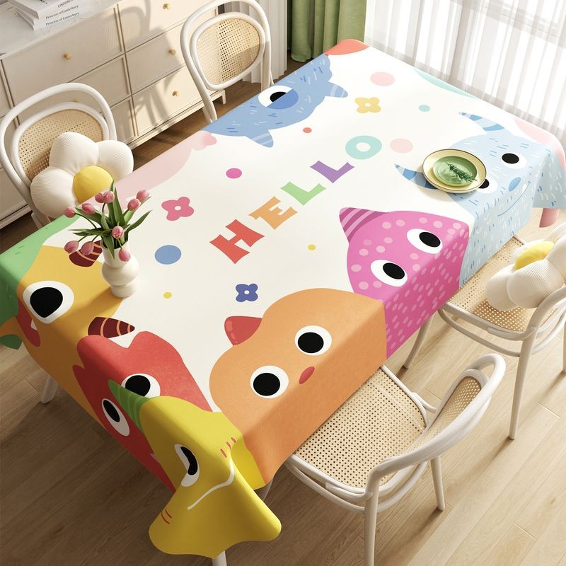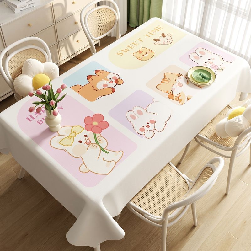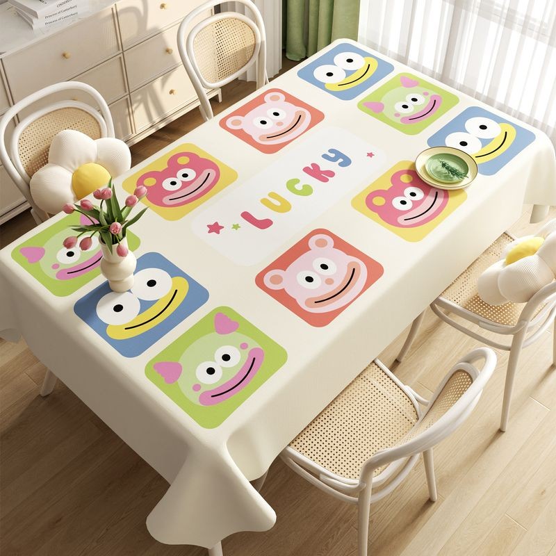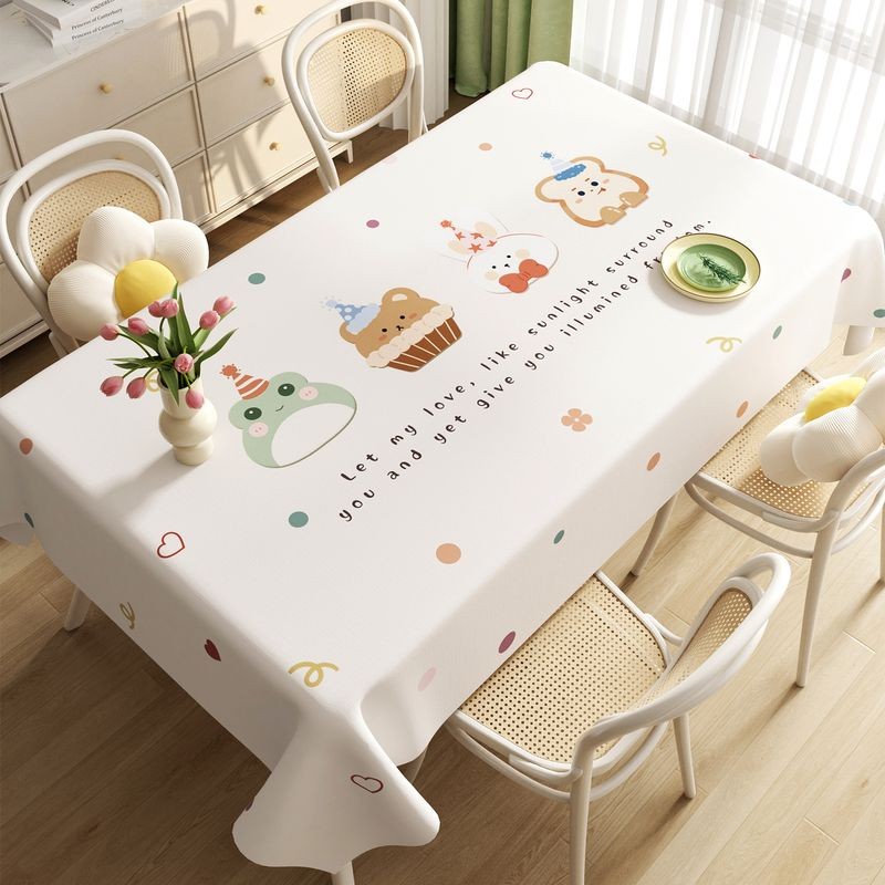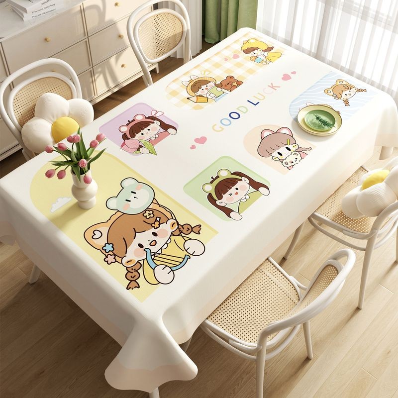 โยนัว ผ้าปูโต๊ะพีวีซีลายการ์ตูนน่ารักสําหรับตกแต่งบ้านกันน้ําและกันลื่น