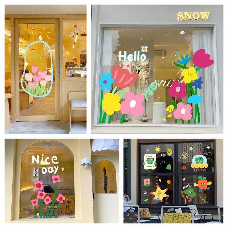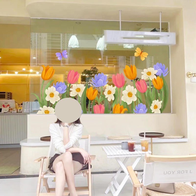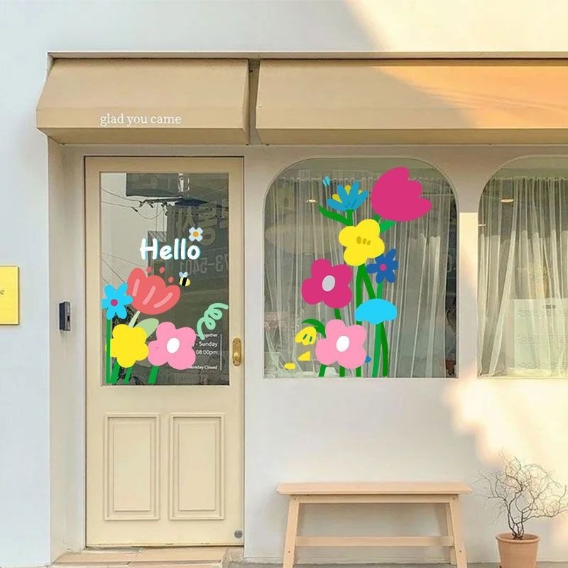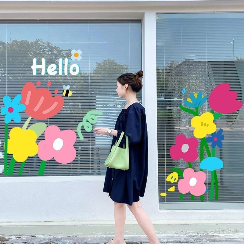 COD สติ๊กเกอร์สูญญากาศ รูปแบบดอกไม้ที่ดี ครอบครัว ร้านค้า ตกแต่งกระจก สติกเกอร์ประตูกระจก แปะไฟฟ้าสถิต