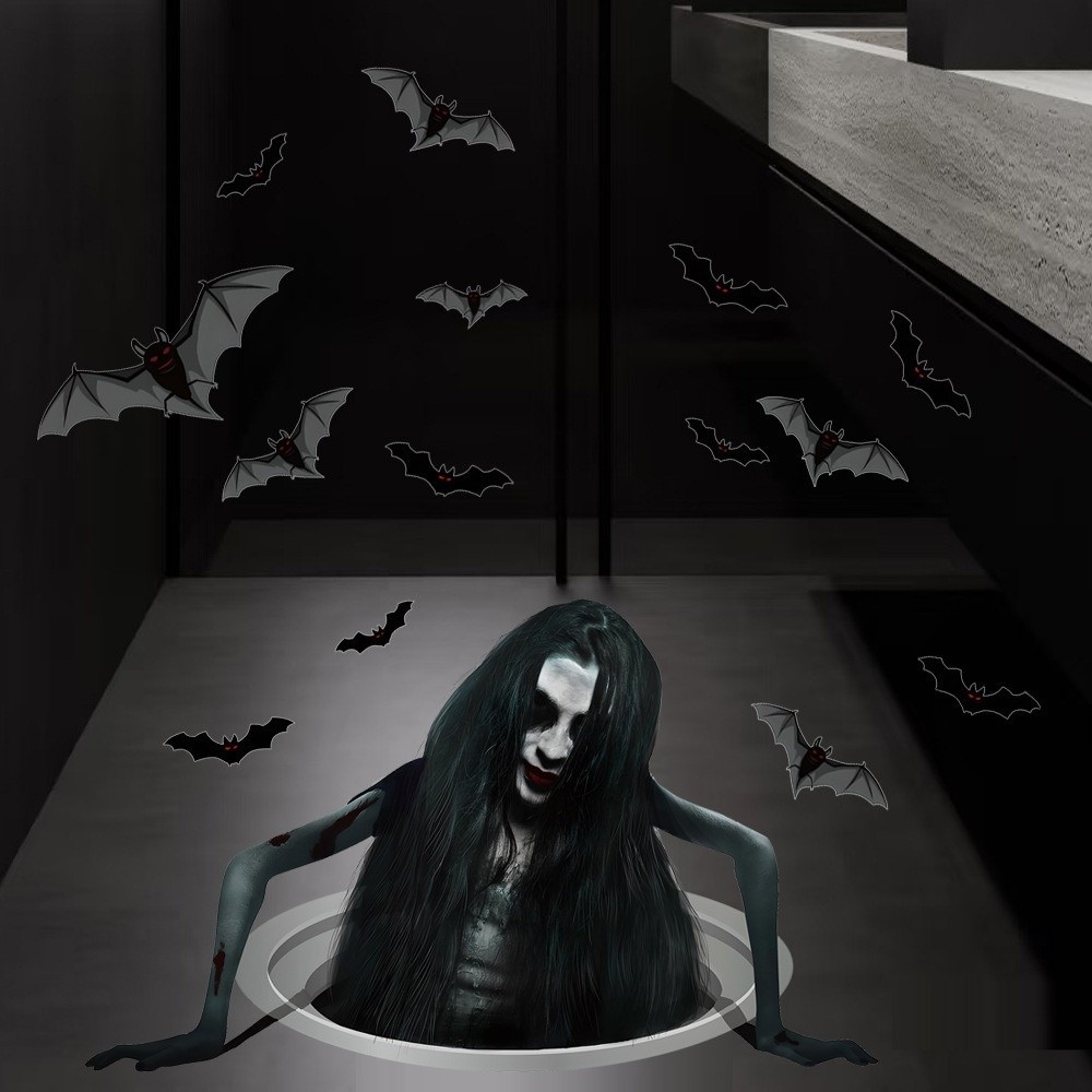 AUGUSTINA ฮาโลวีน Ghost สติกเกอร์, ผมยาวผู้หญิงตลก Ghost สติ๊กเกอร์ติดผนัง, Easy Peel ที่ถอดออกได้ PVC น่ากลัวฮาโลวีน Decal บรรยากาศเทศกาล