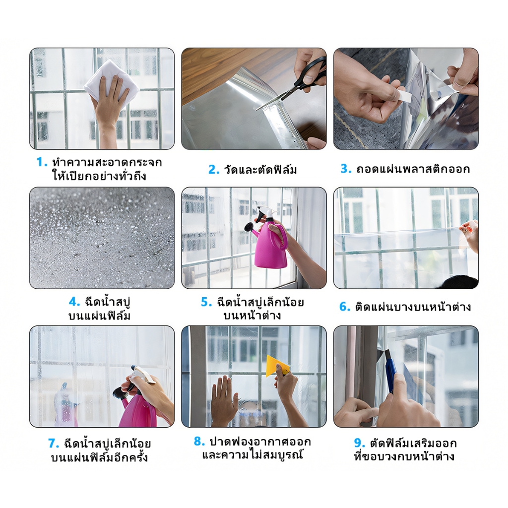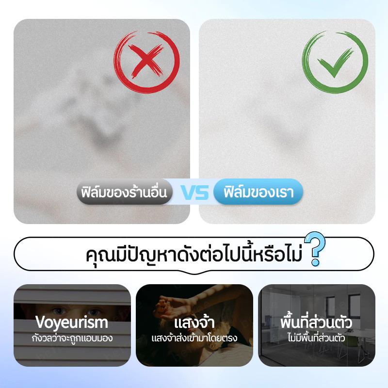 7 mart ฟิล์มติดกระจก สุญญากาศ ลายฝ้าขุ่น ติดง่าย กันมอง กันร้อน ลอกออกไม่ทิ้งคราบ สติกเกอร์ติดกระจก สำนักงานและบ้าน