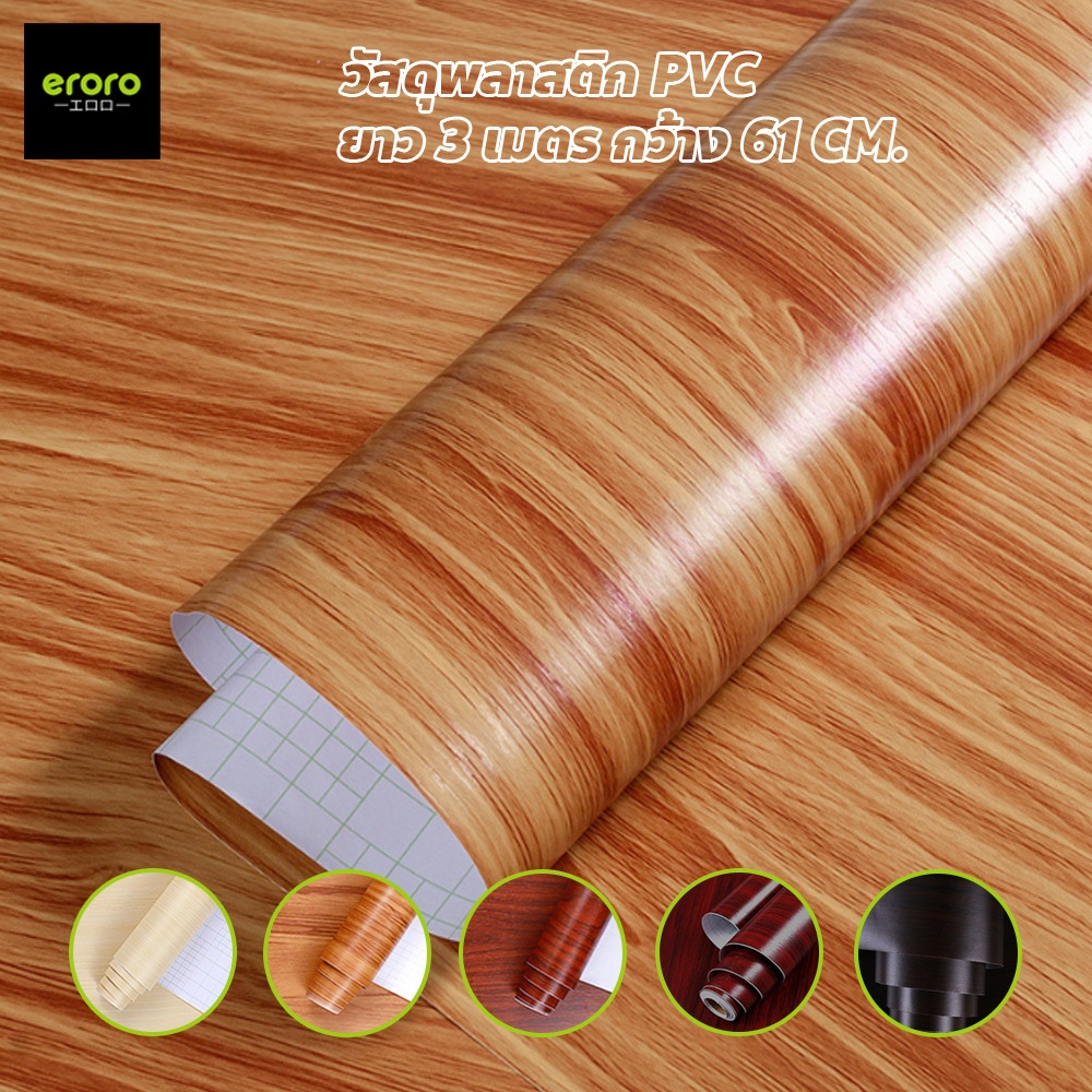 ERORO สติกเกอร์ติดโต๊ะ ติดผนัง ลายไม้ วอลเปเปอร์กันน้ำ 61ซม. x 3ม. มีกาวในตัว