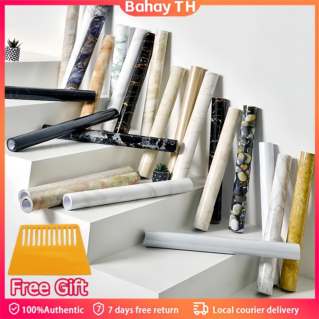 60×500ซม. สติกเกอร์ PVC กันน้ำกันน้ำมันสำหรับห้องครัวแบบมีกาวในตัวอเนกประสงค์ วอลเปเปอร์หินอ่อน แกรนิต
