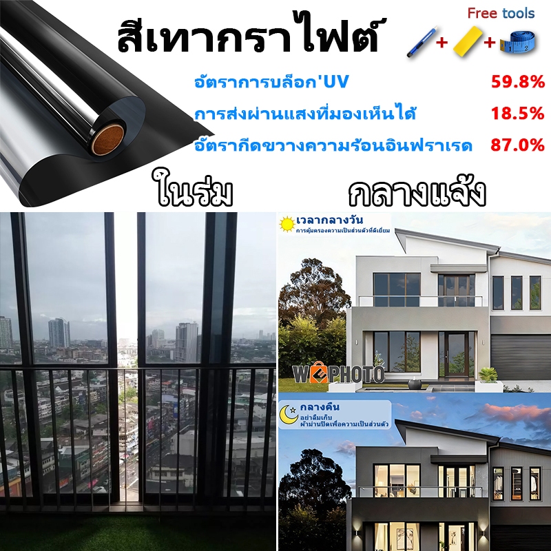 Dark Gray Window Film ฟิล์มติดกระจกสีทอง ฟิล์มอาคาร ฟิล์มปรอท ฟิล์มกรองแสง ฟิล์มติดกระจก (ราคาต่อเมตร)