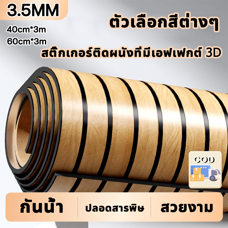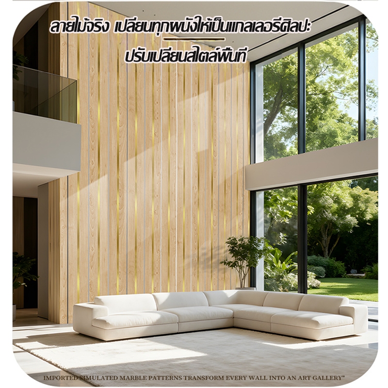 COD✅ วอลเปเปอร์ติดผนัง วอลเปเปอร์3D วอลเปเปอร์ลายไม้ระแนง PVC มีกาวในตัว 60cm*3m วอลเปเปอร์ติดบ้าน
