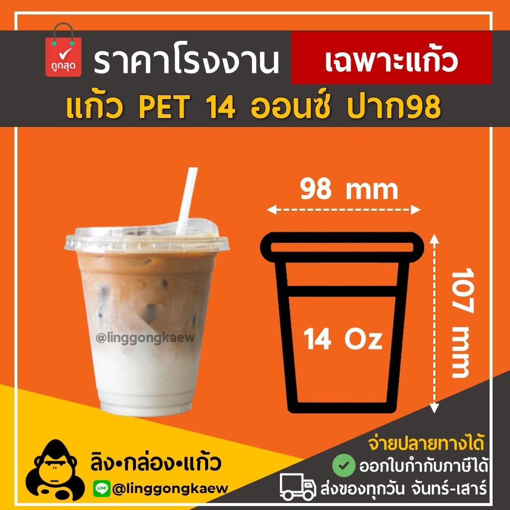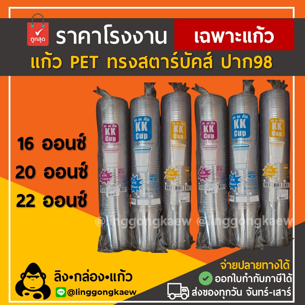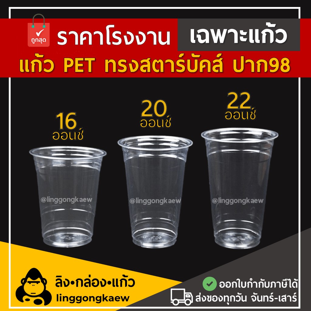 (500ใบ) แก้วกาแฟเย็น พลาสติก PET เนื่อหนา ยกลัง ทรงสตาร์บัค 12/14/16/20/22oz. ปาก 98 linggongkaew