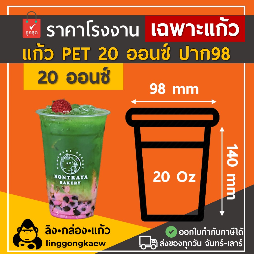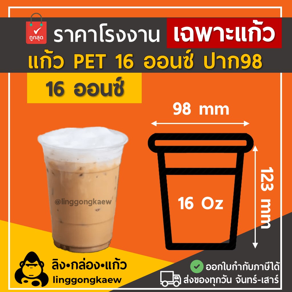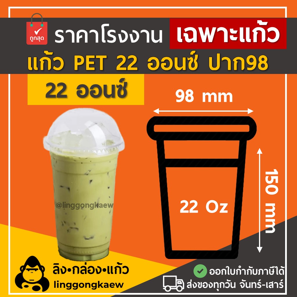 (500ใบ) แก้วกาแฟเย็น พลาสติก PET เนื่อหนา ยกลัง ทรงสตาร์บัค 12/14/16/20/22oz. ปาก 98 linggongkaew