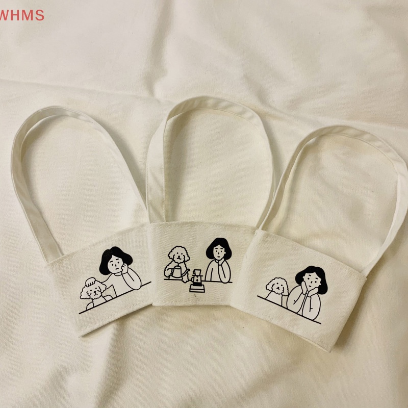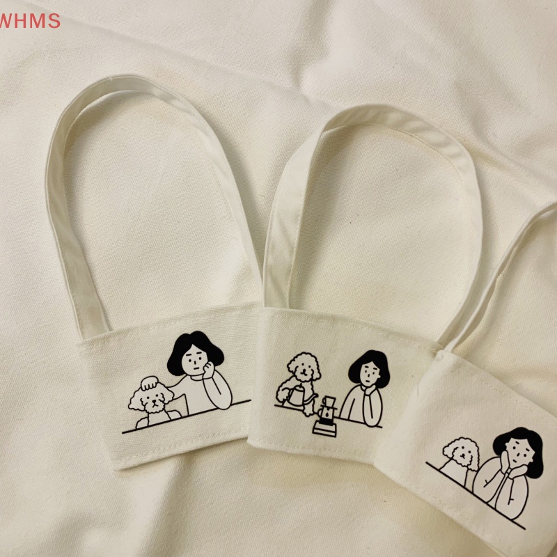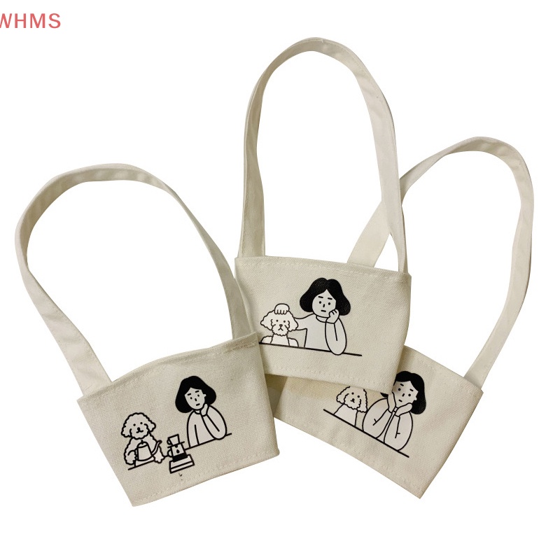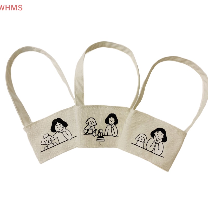 (WHMS) กระเป๋าผ้าใบ แบบพกพา สําหรับใส่ขวดน้ํา แก้วกาแฟ ชานม