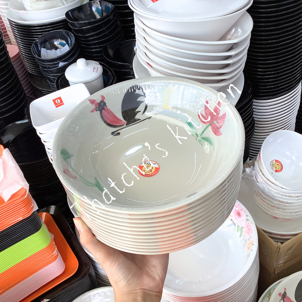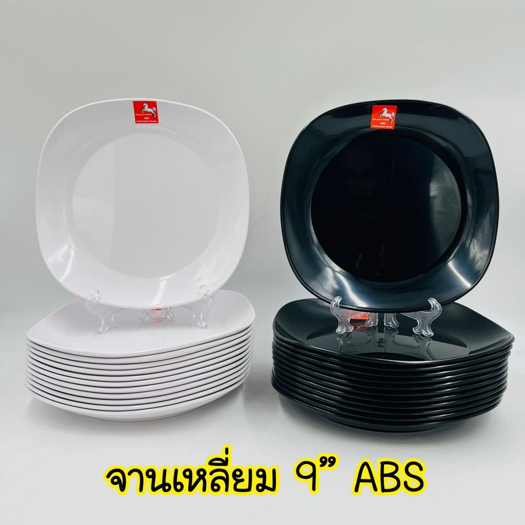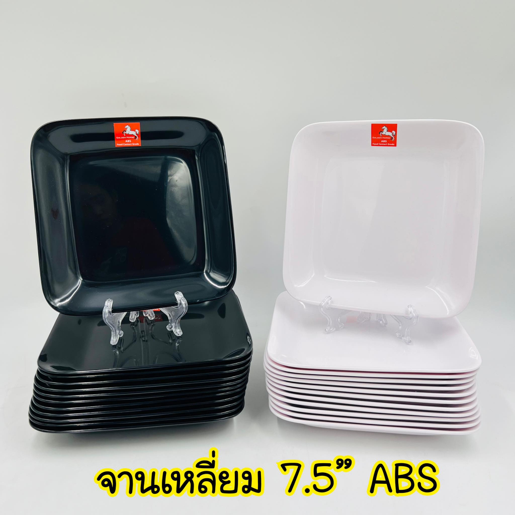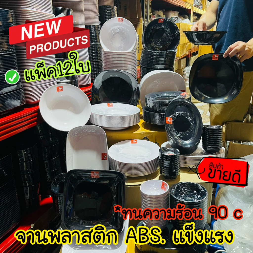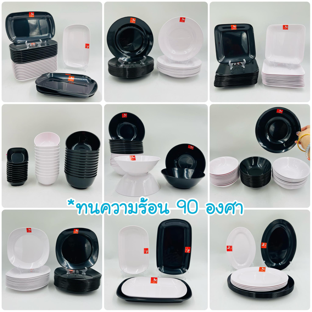 (12ใบ) จาน ชาม ทนร้อน ชามแบ่ง จานเปล ถ้วยน้ำจิ้ม สีดำ สีขาว พลาสติก ABS PURE100% (FOOD CONTACTGRADE)