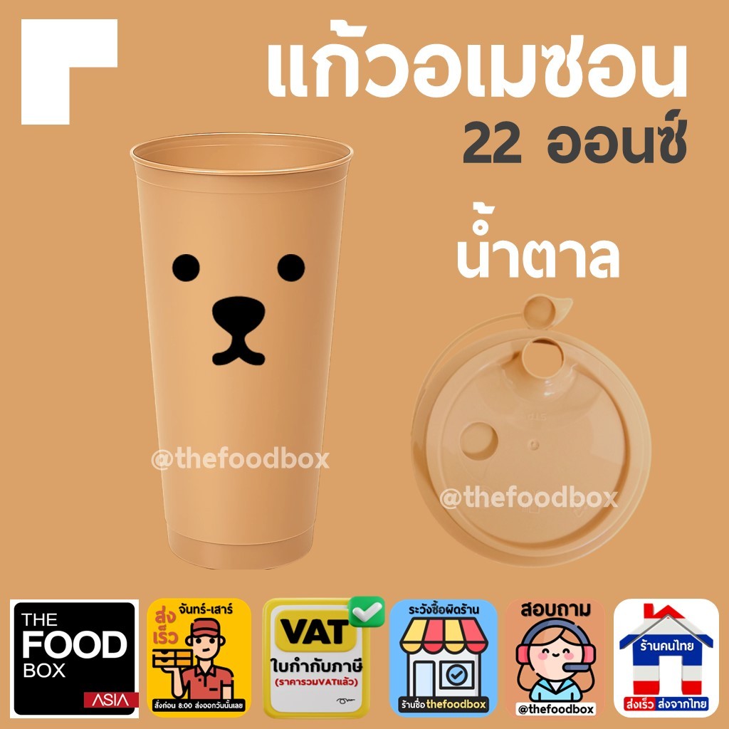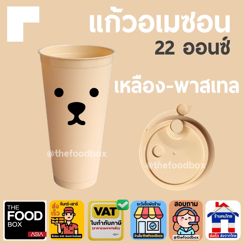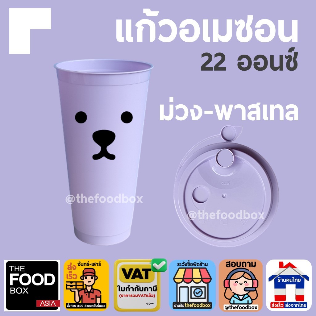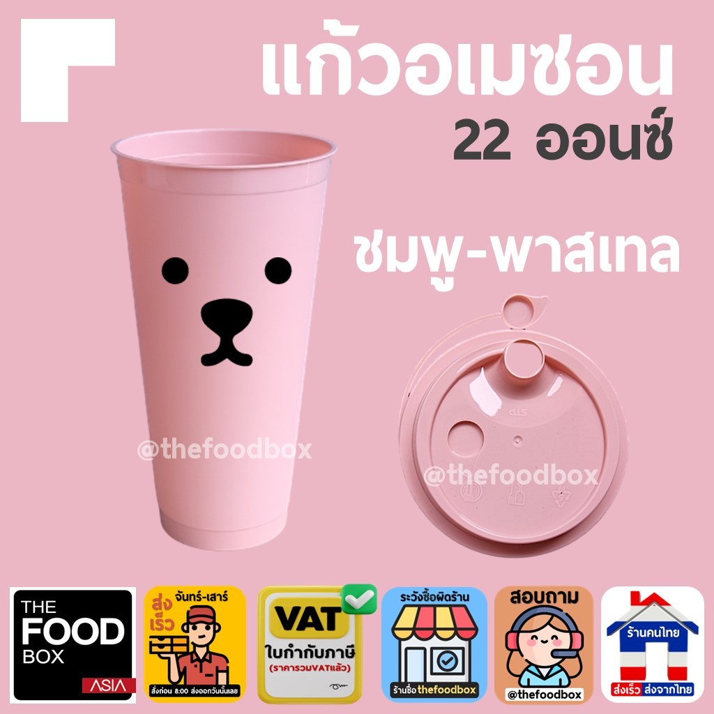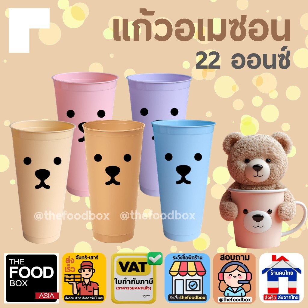 (50ใบพร้อมฝา) แก้วหมี แก้วกาแฟเย็น พลาสติก แข็ง PP ทรงอเมซอน พาสเทล มุ้งมิ้ง Amazon reusable cup thefoodbox