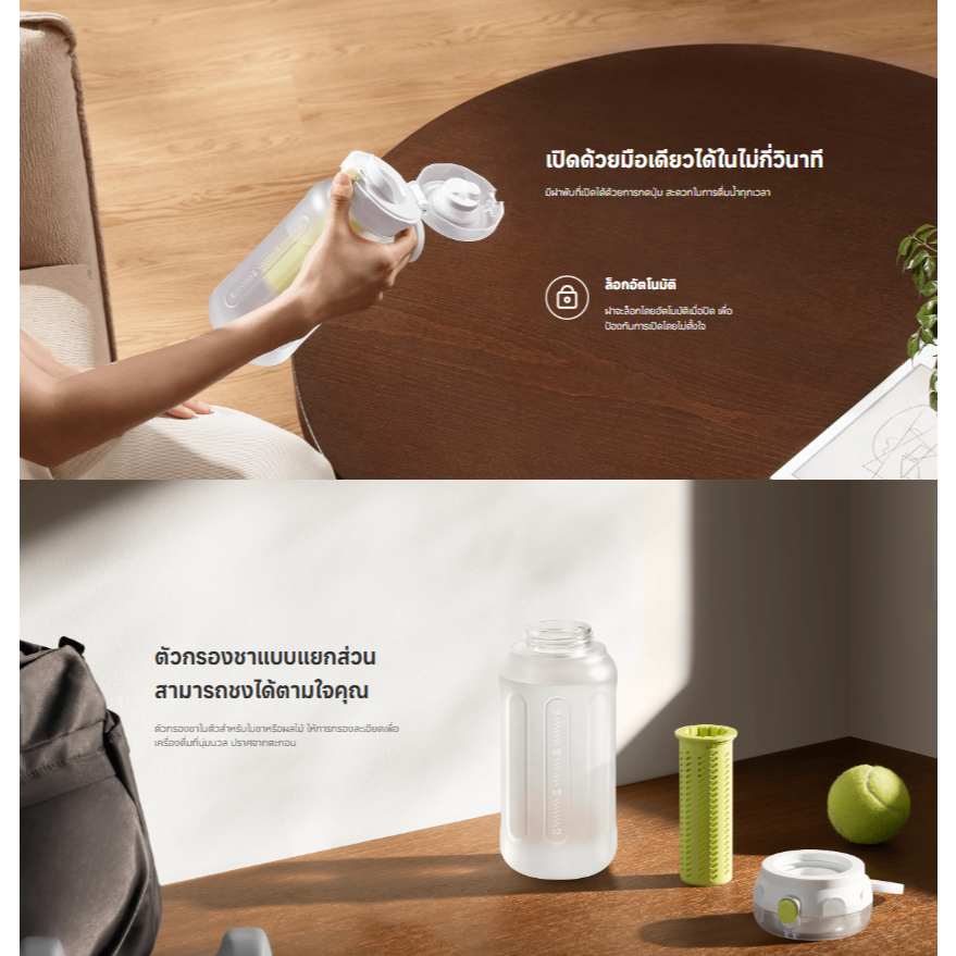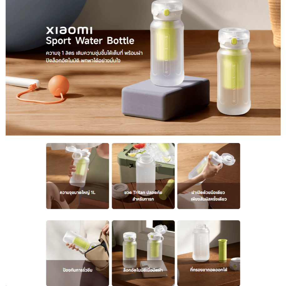 (NEW) Xiaomi Sport Water Bottle | ความจุขนาดใหญ่ 1L | วัสดุปลอดภัย | ล็อกอัตโนมัติเมื่อปิดฝา | ที่กรองชาถอดออกได้