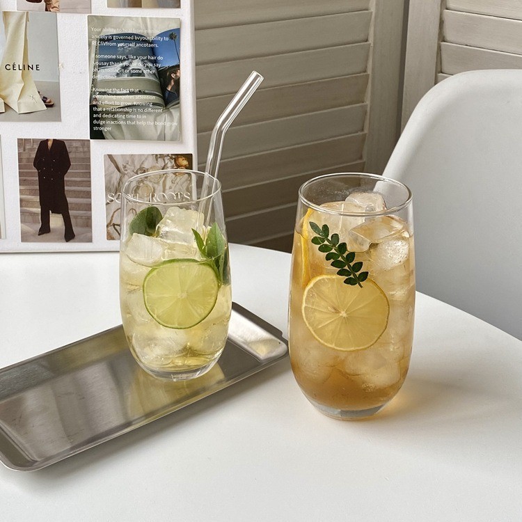 แก้วโอ่ง แก้วน้ำ ทรงกลม สไตล์คาเฟ่ ดีไซน์ มินิมอล ใส่เครื่องได้หลากหลาย
