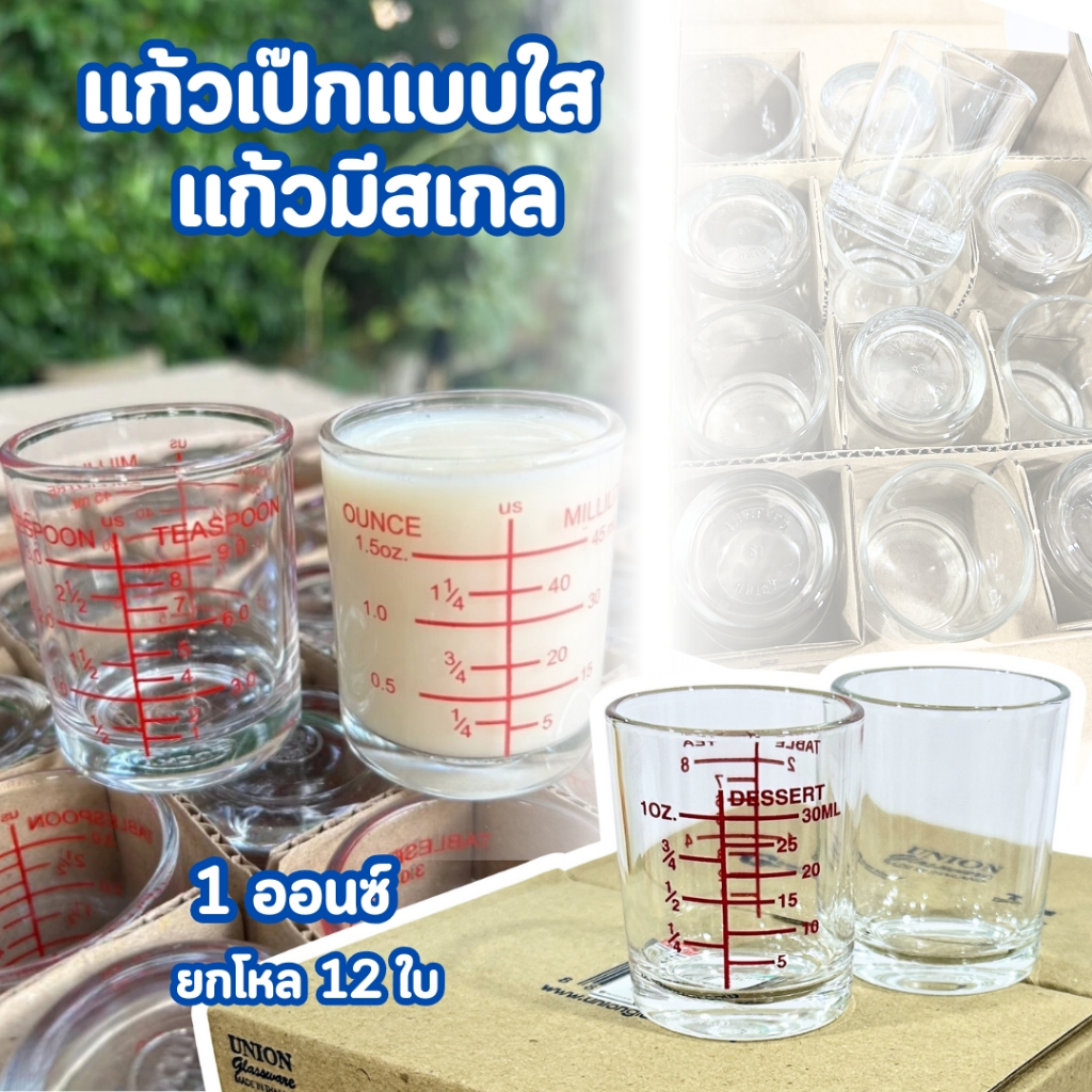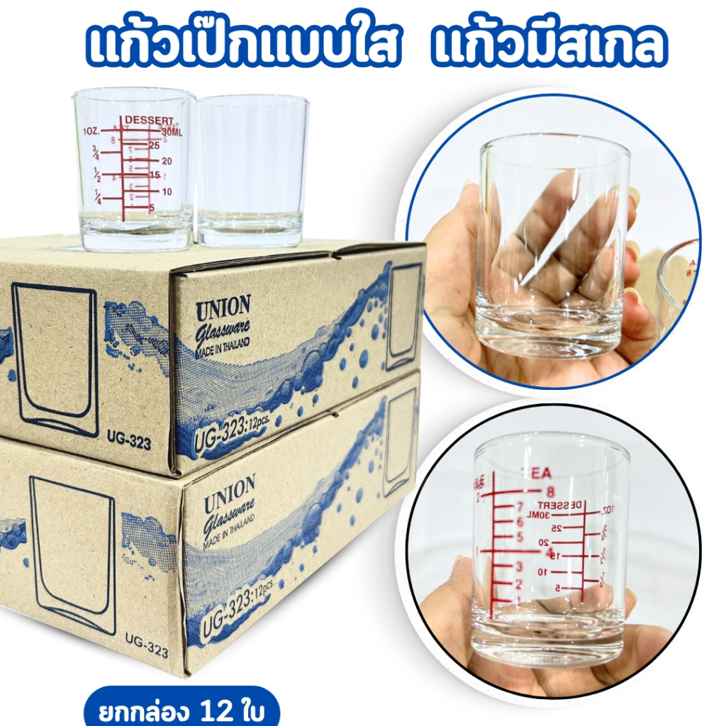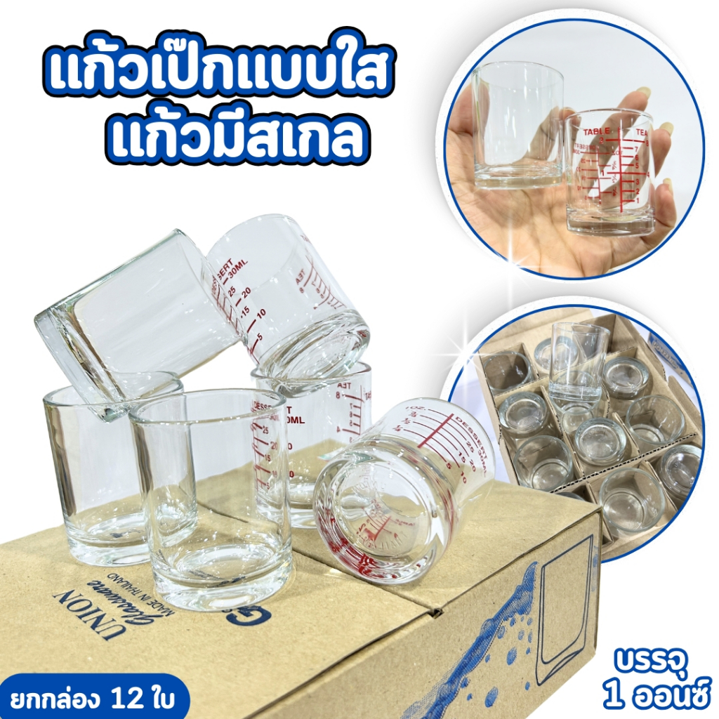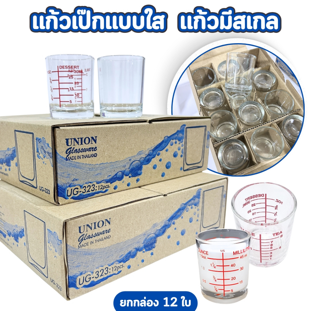 แก้วเป็ก แก้วมีสเกล แก้วช็อต UNION UG-323 มี2 ตัวเลือก แก้วตวง มีขีดยา ก้นเรียบ ขนาด 2 oz. ยกกล่อง 12 ใบ แก้ว