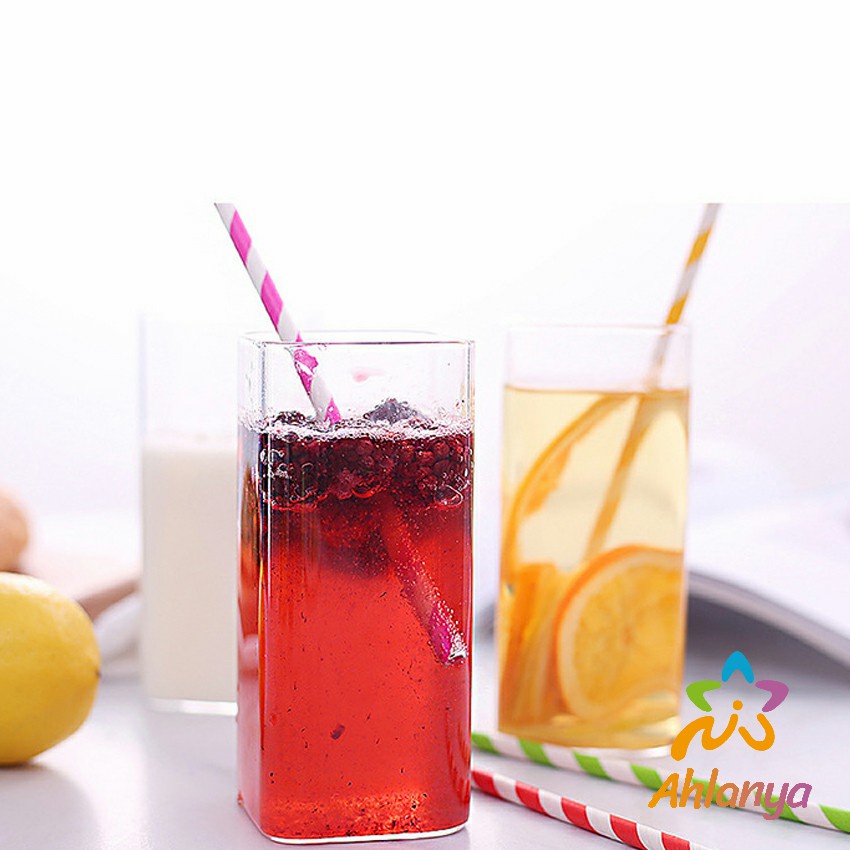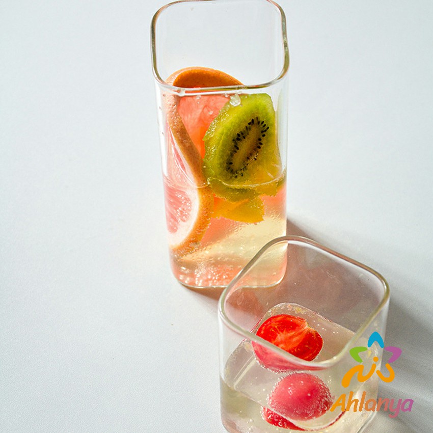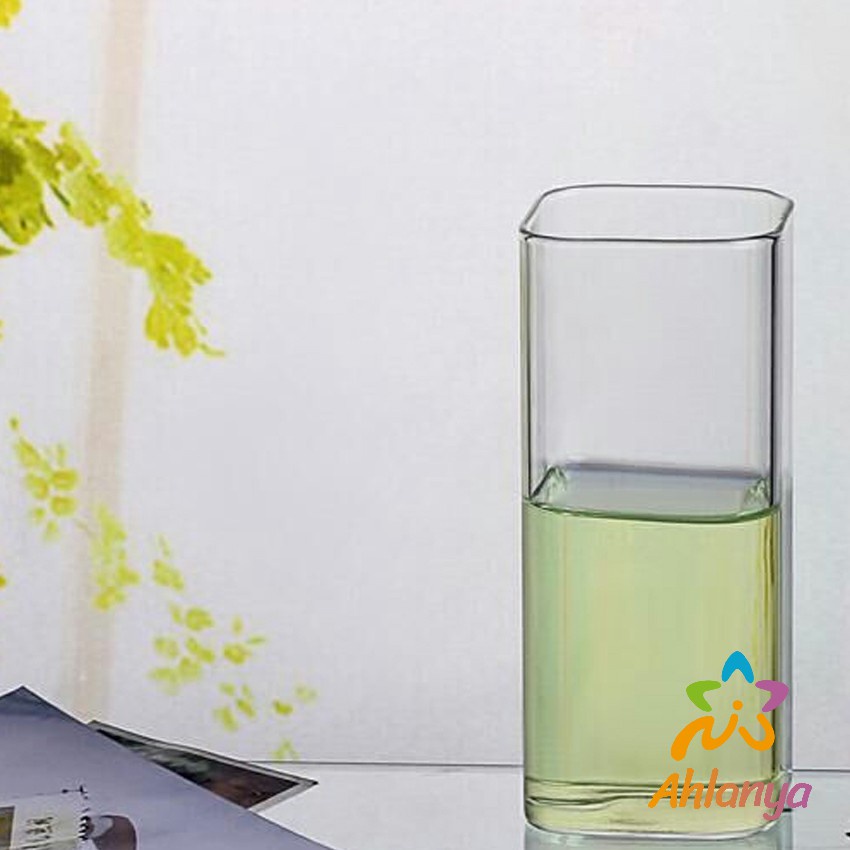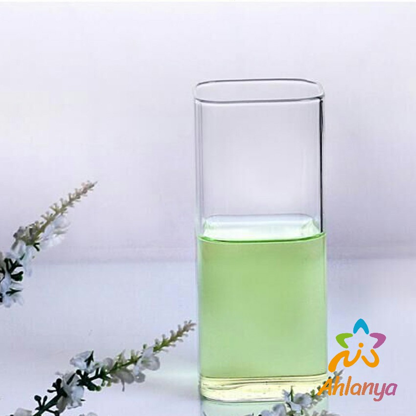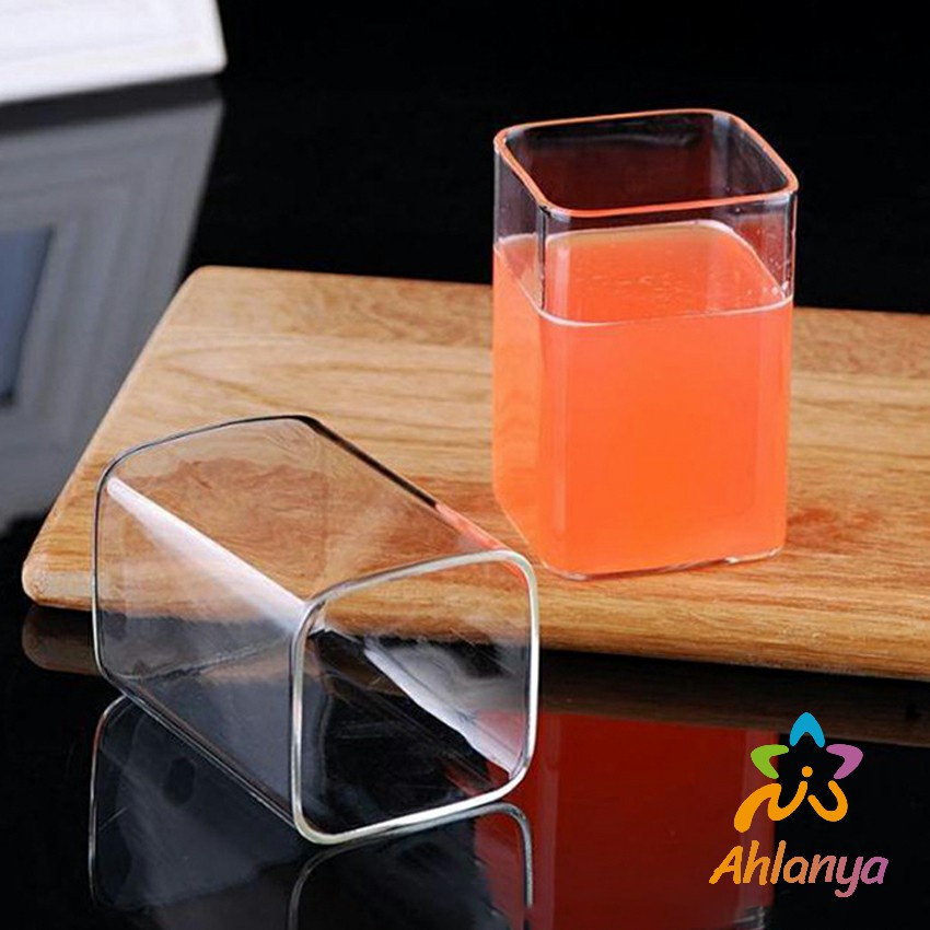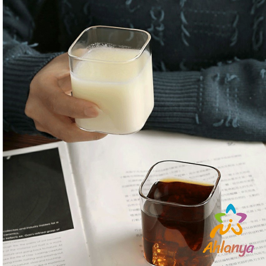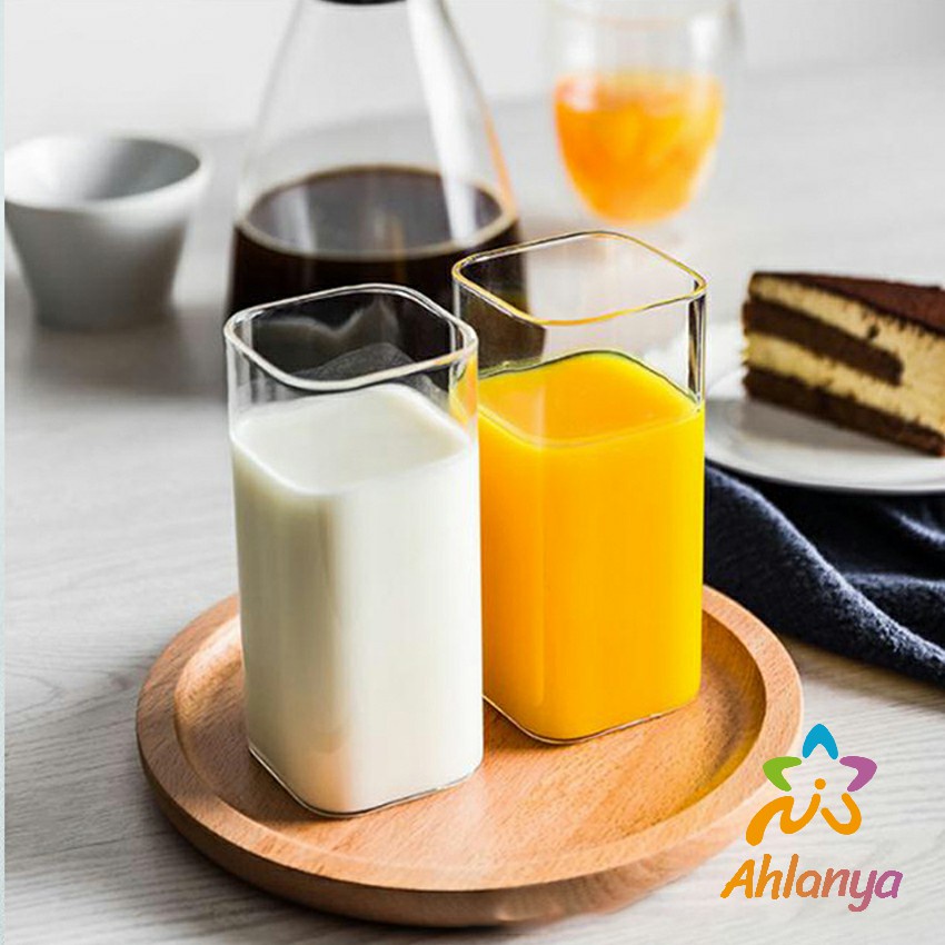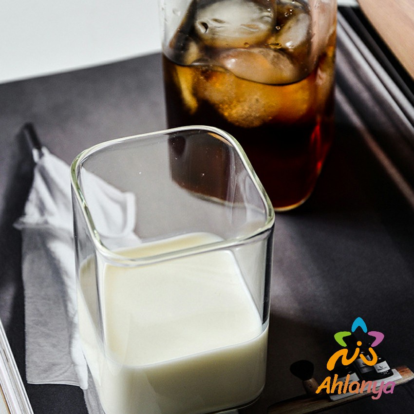 Ahlanya แก้วนมทรงสี่เหลี่ยมทนความร้อน ใส่เย็นได้ Square transparent glass