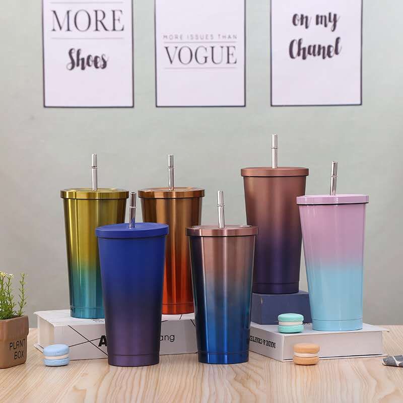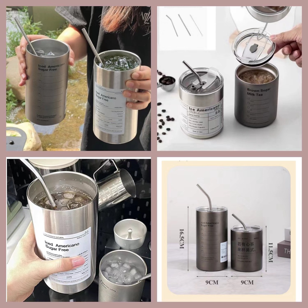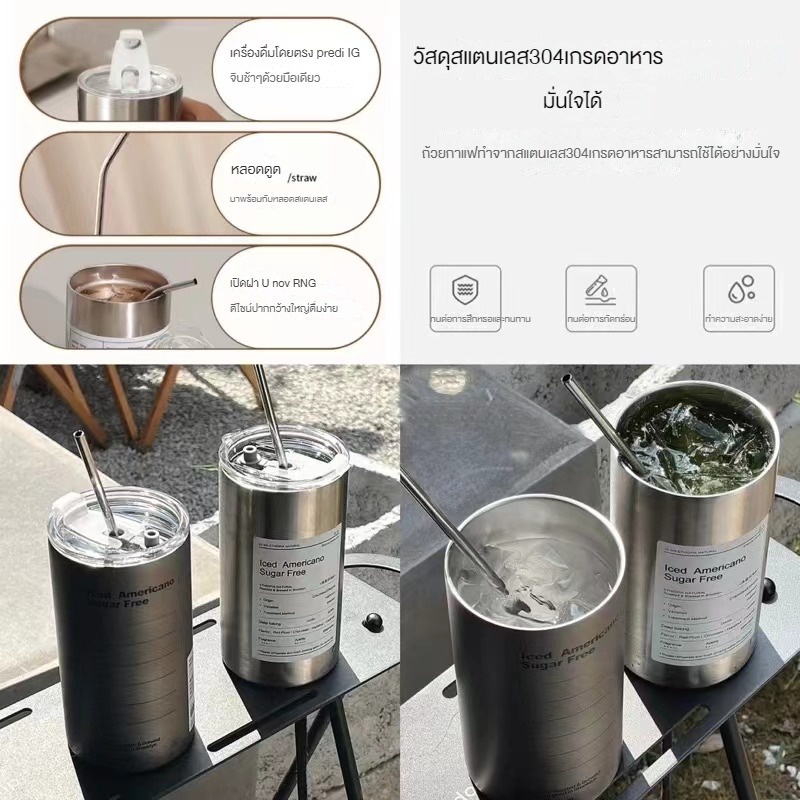 304สแตนแก้วกระติกน้ําร้อน ขนาด600มล กาแฟ ถ้วยน้ําแข็ง 3สี พร้อมฟางขวดน้ํา พร้อมฝาปิด แบบสองชั้น ถ้วยน้ำ สําหรับรถยนต์