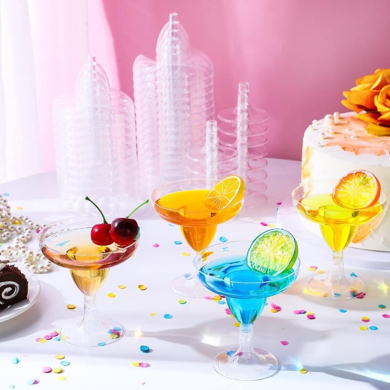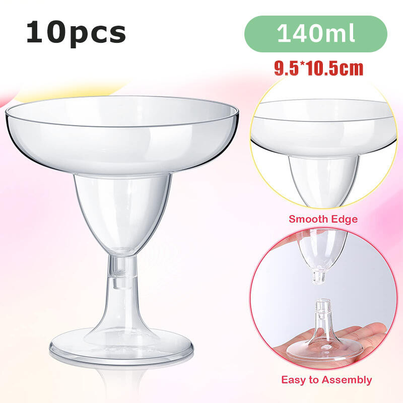 10pcs แก้วมาร์เกอรีต แก้วพลาสติกใช้ครั้งเดียว แก้วไวน์ PS ใส ถอดประกอบได้ แก้วไวน์รูปน้ำเต้าอย่างมีสง่า