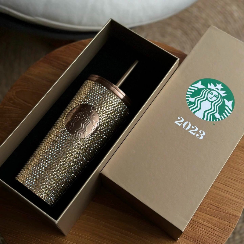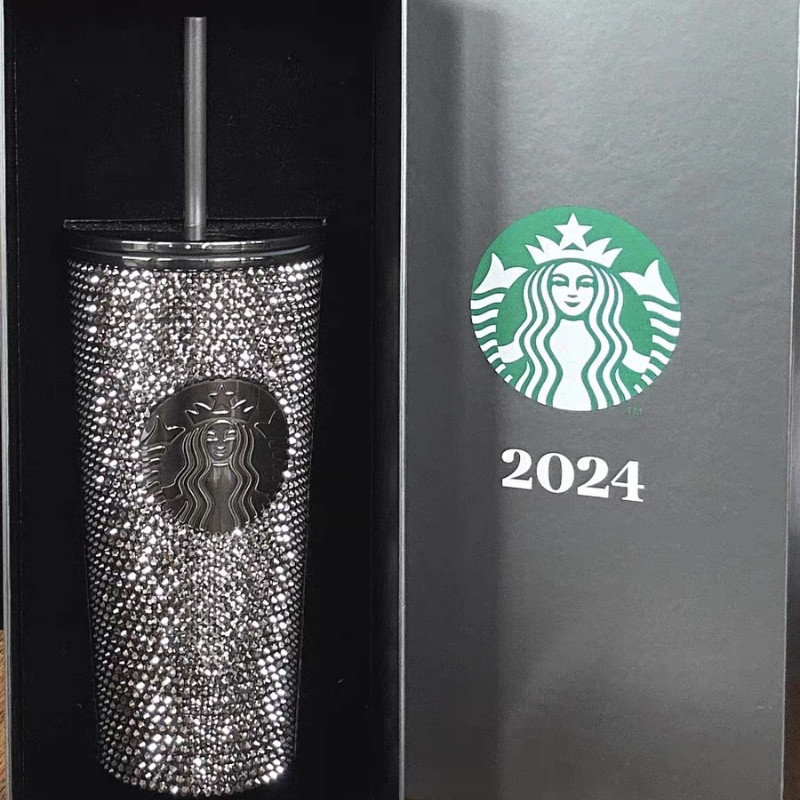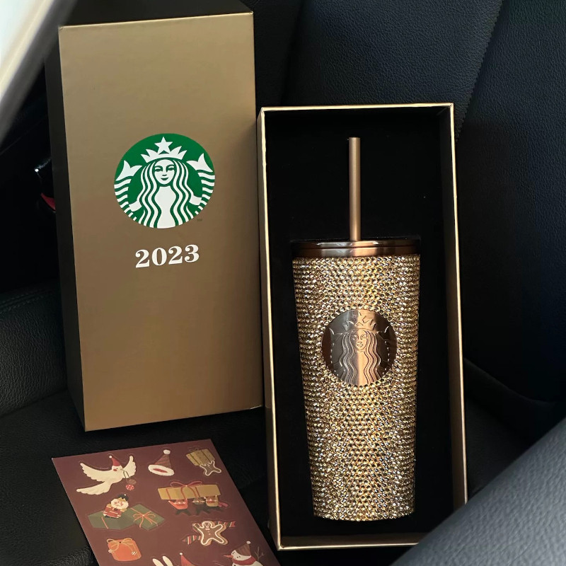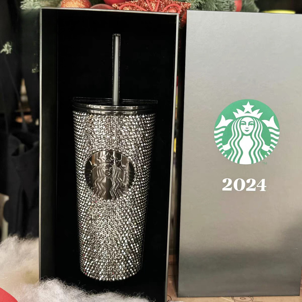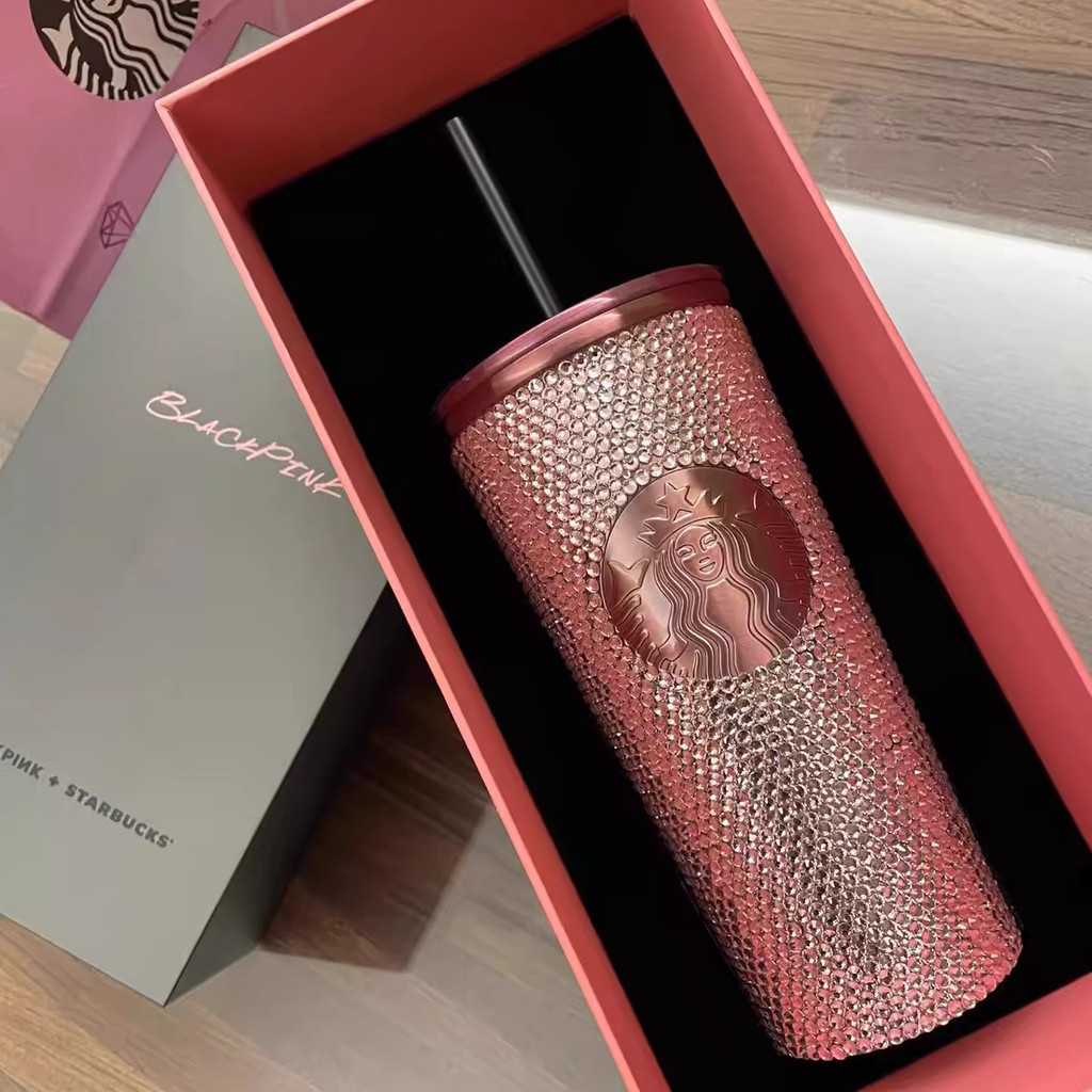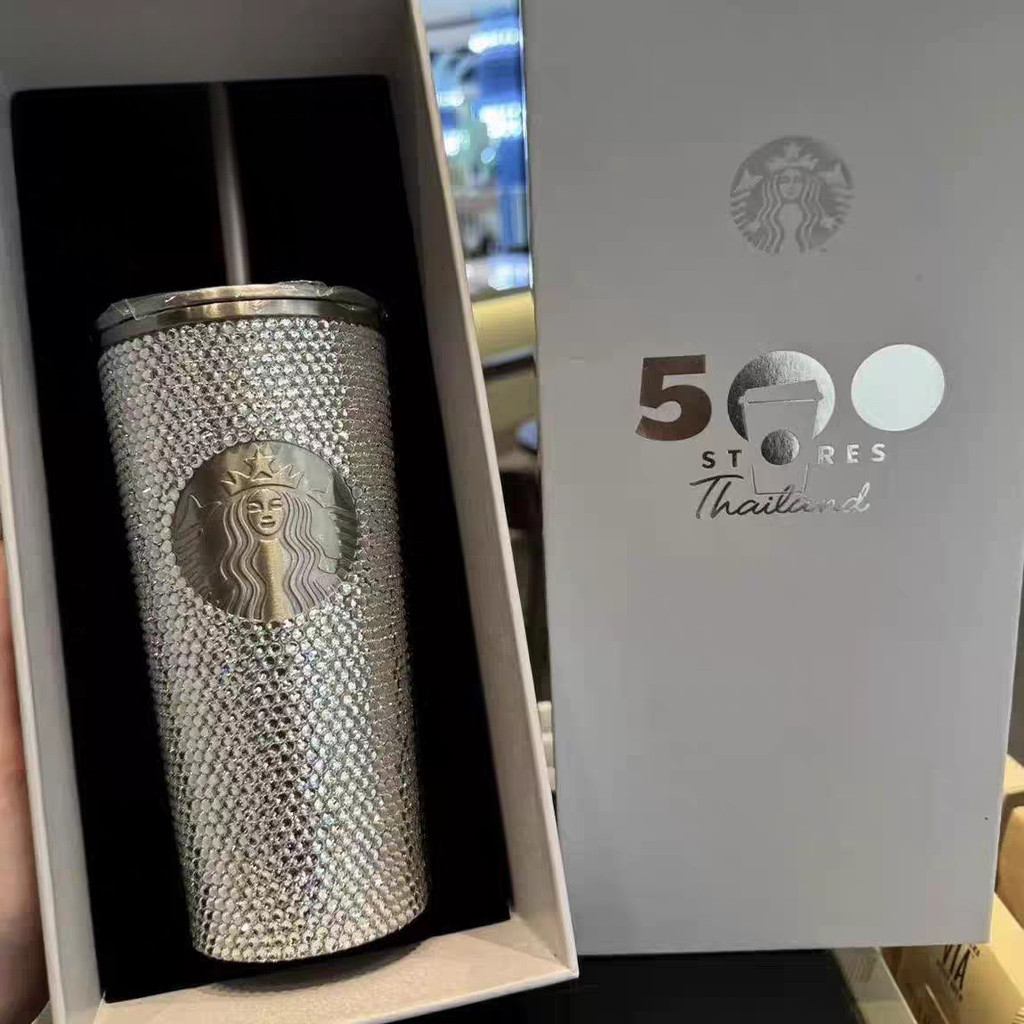 5สีสตาร์บัคส์ถ้วยเพชรสีดํากล่องของขวัญจํากัด304ถ้วยเก็บความร้อนสแตนเลสถ้วยฟางถ้วยกาแฟเก็บความเย็นความจุขนาดใหญ่473มล