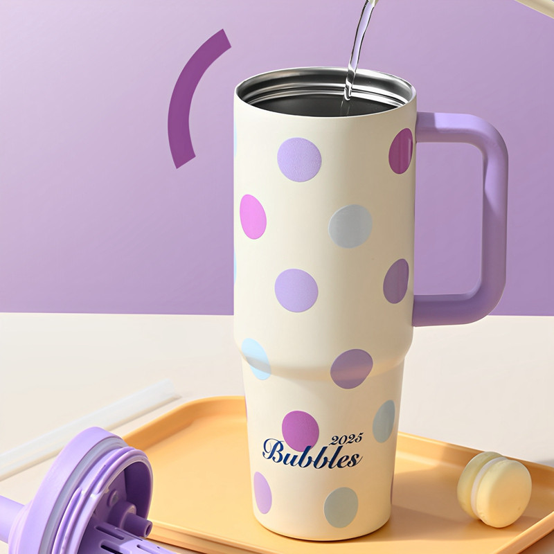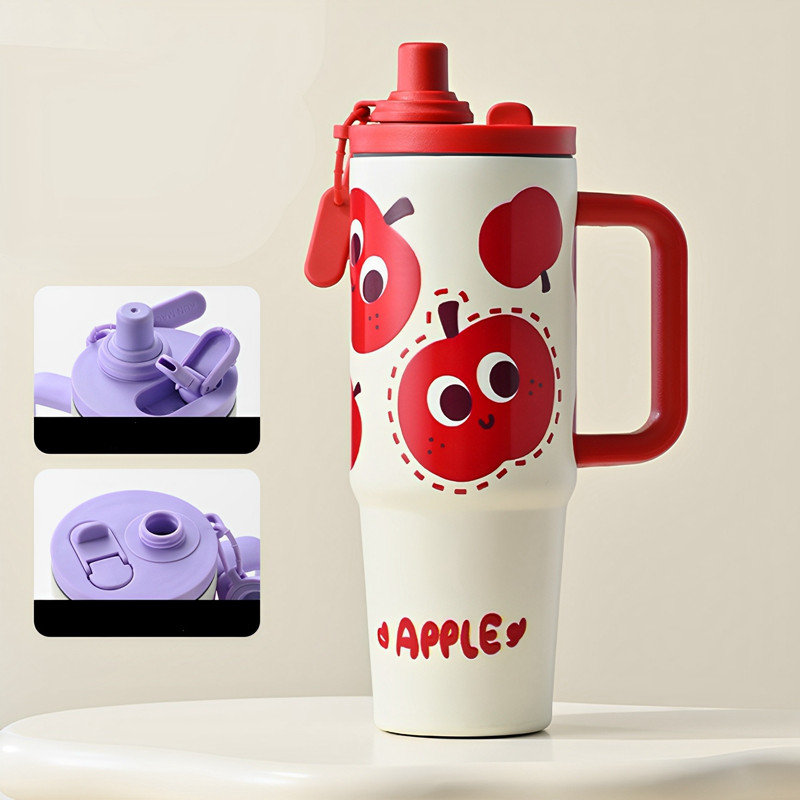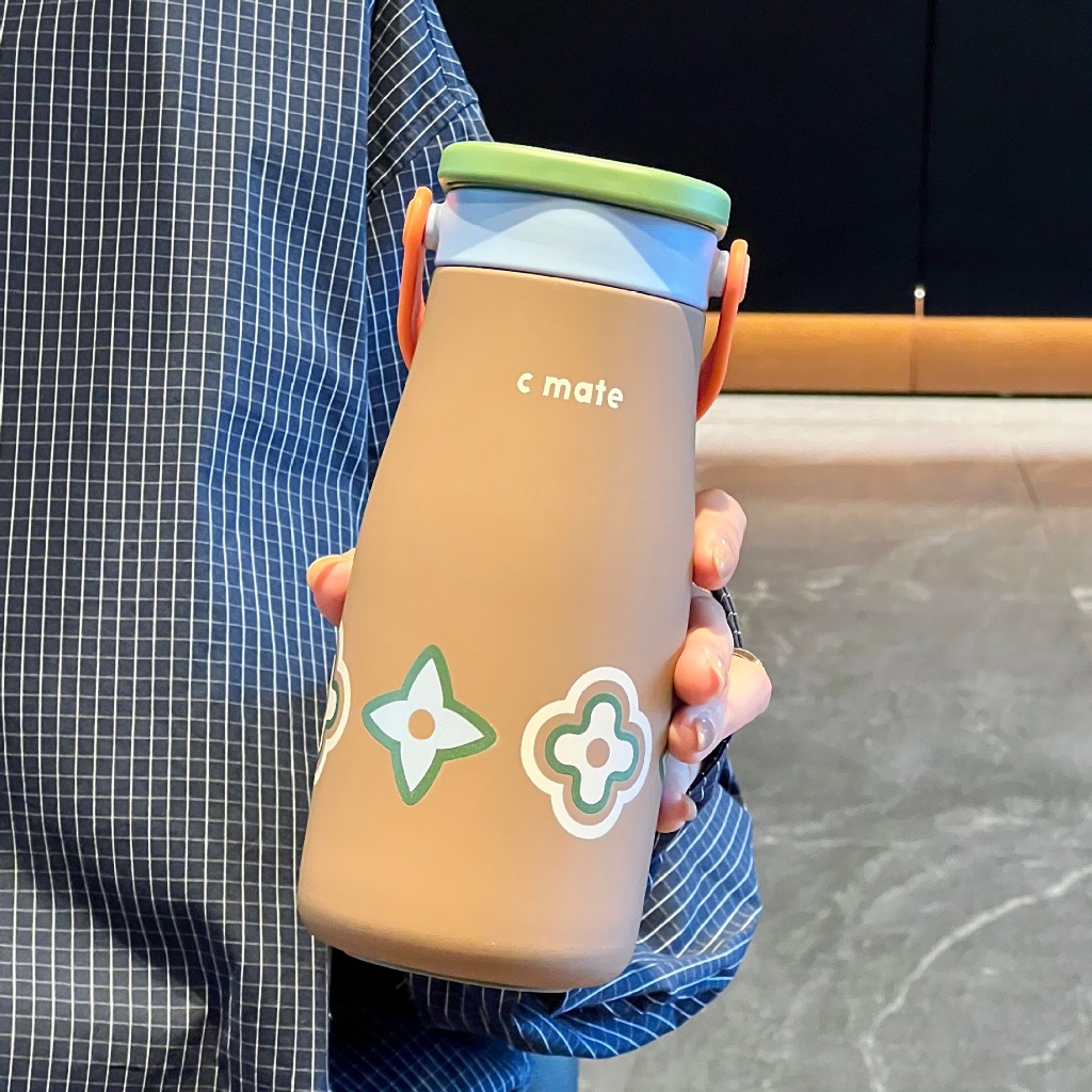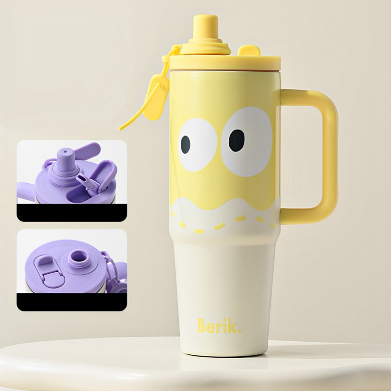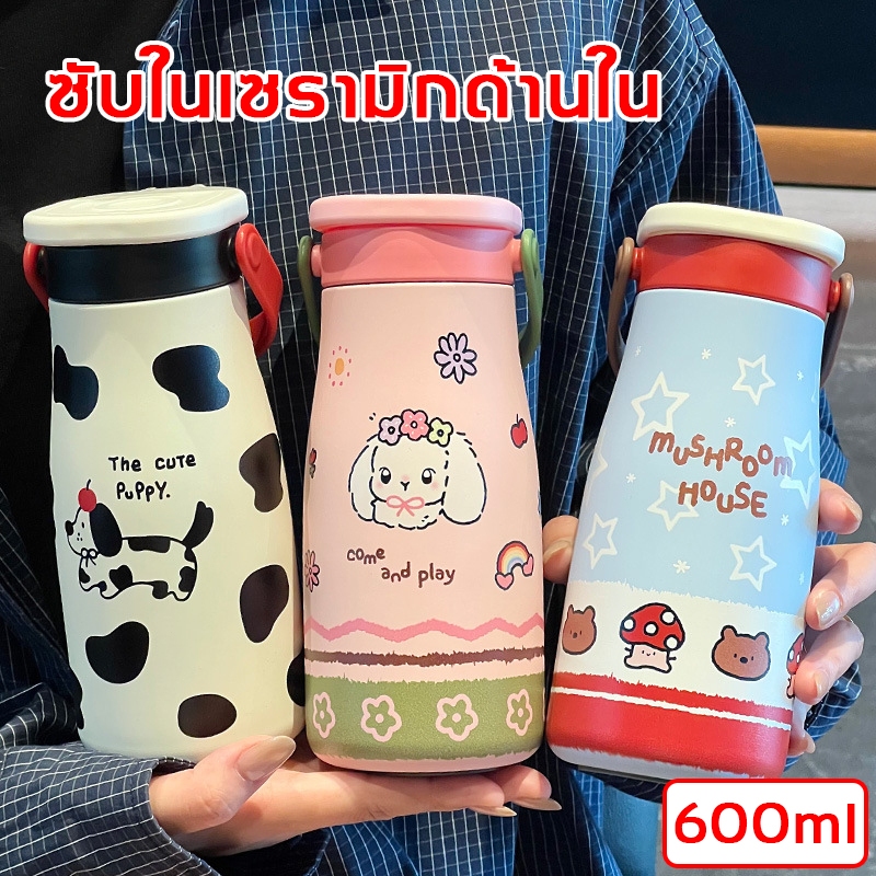 20oz ข้างในเป็นเซรามิก แก้วเก็บความเย็น 316 ถ้วยน้ําเก็บความร้อนแบบพกพ ฟางแบบพกพาถ้วยดื่ พร้อมที่จับ