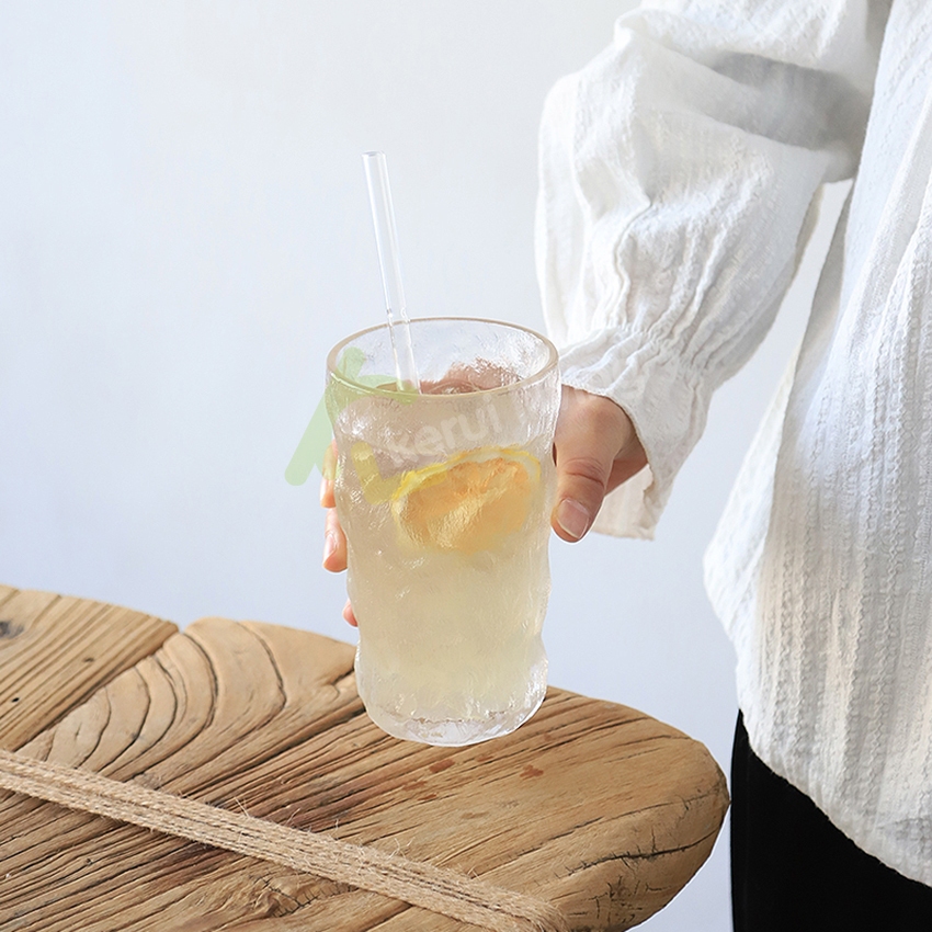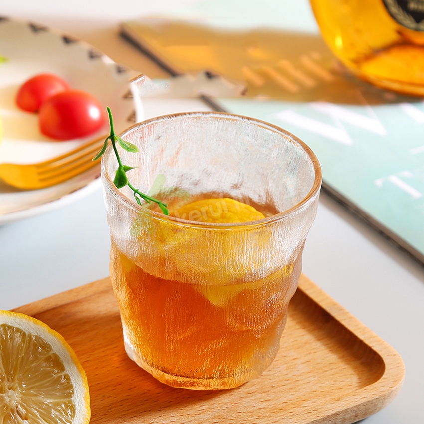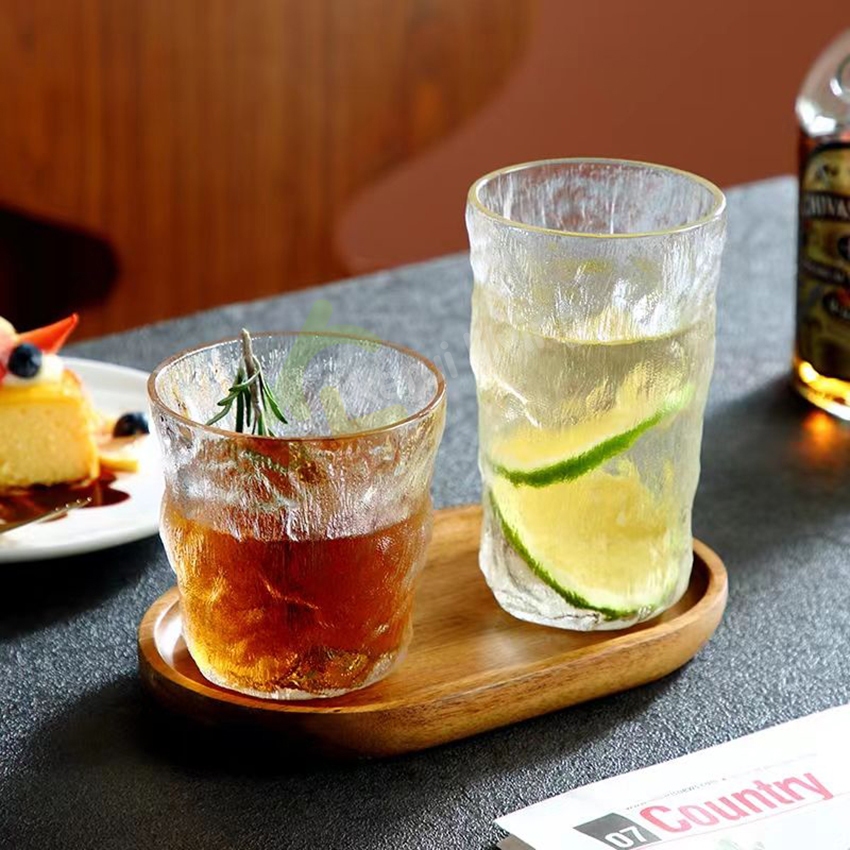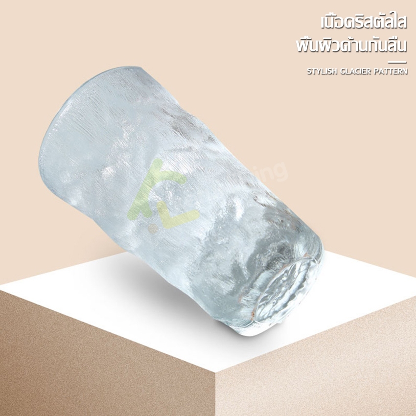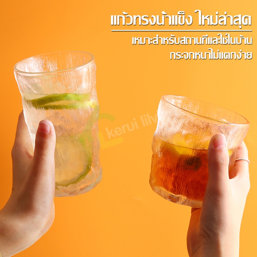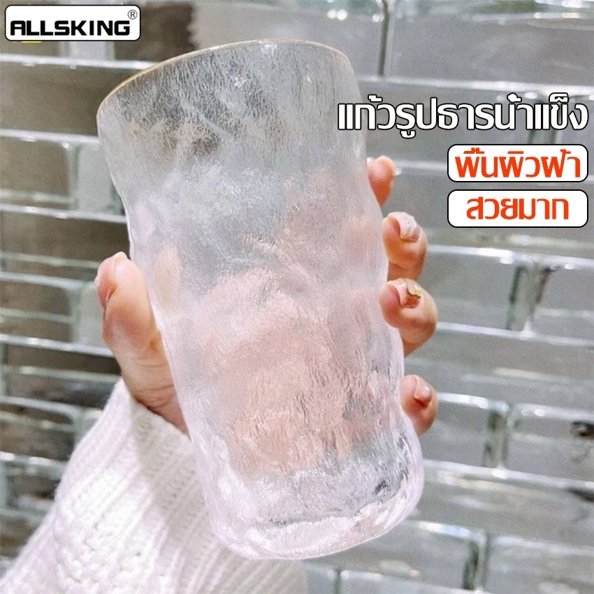Allsking แก้วน้ำ glass cup แก้วน้ำใส่เครื่องดื่ม แก้วมีลาย จับถนัดมือ แบบหนา มี 2 ขนาดให้เลือก