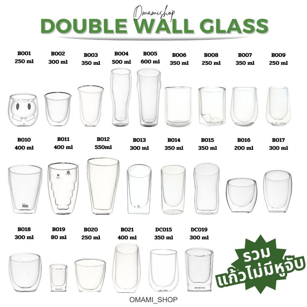5/19 [แก้วไม่มีหูจับ]แก้วใส 2 ชั้น Double Wall Glass มี 21 แบบ 80-550 ml สวยงาม ทนทาน ใส่ได้ทั้งน้ำร้อน/เย็น พร้อมส่ง