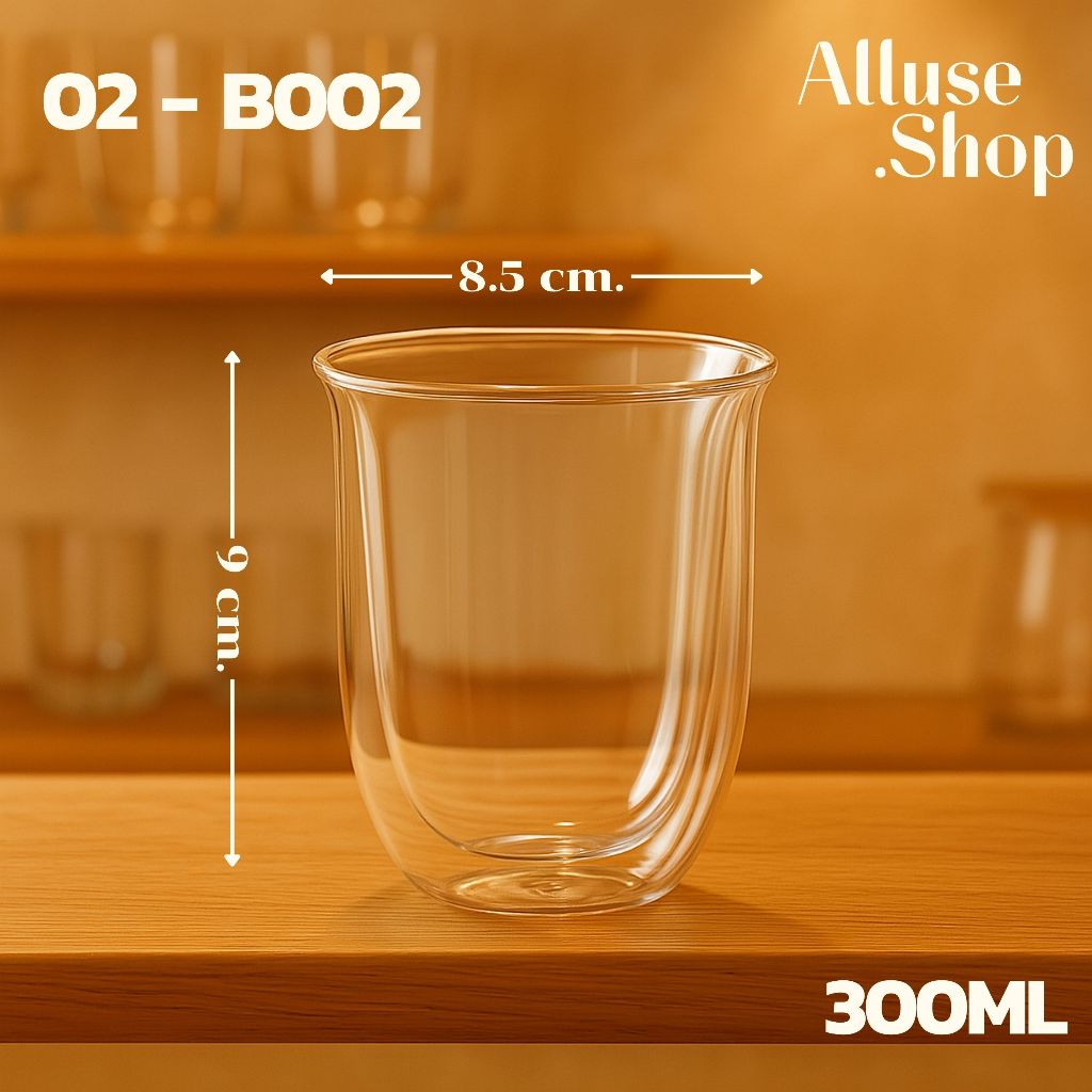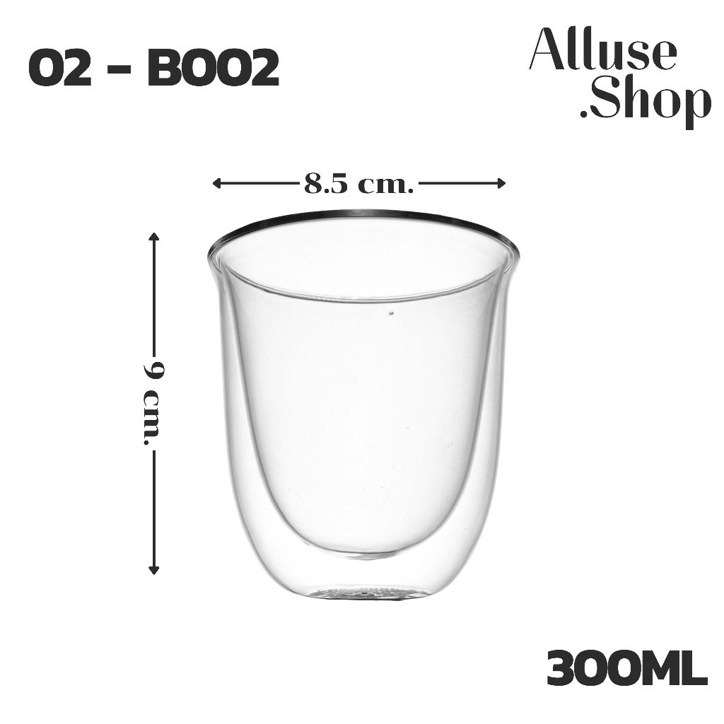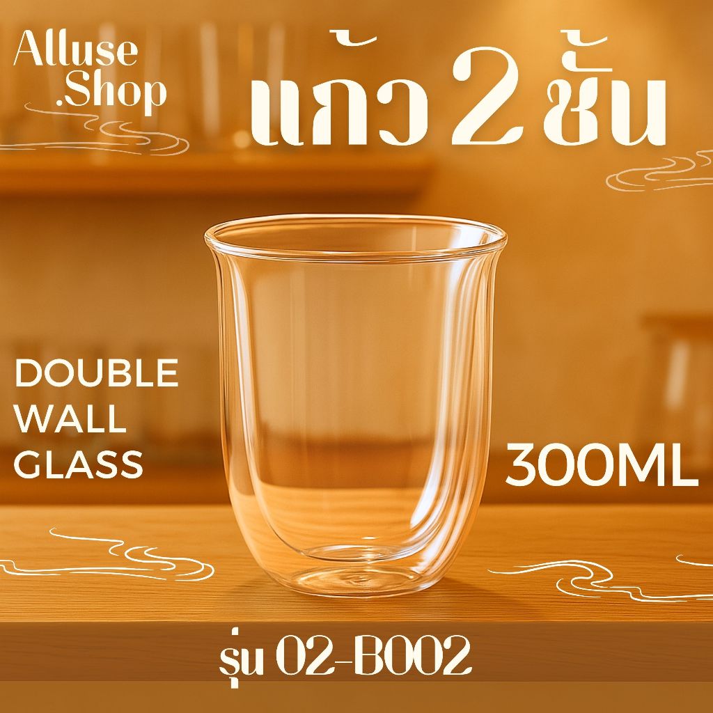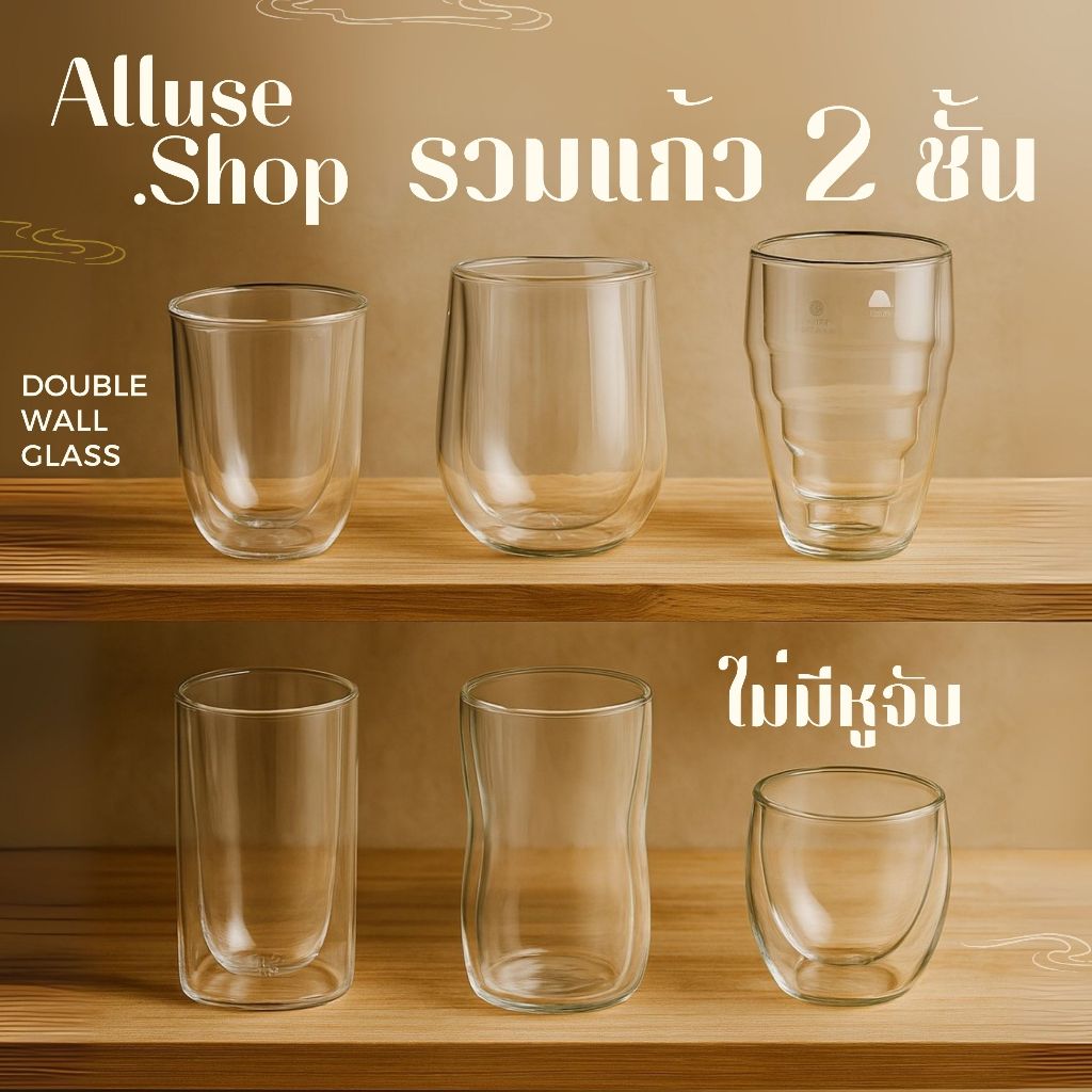 Alluse.shop แก้วสองชั้น รุ่น02-B002 300ml Double Wall Glass สวยงาม ทนทาน ใส่ได้ทั้งน้ำร้อน/เย็น พร้อมส่ง มีส่งด่วน