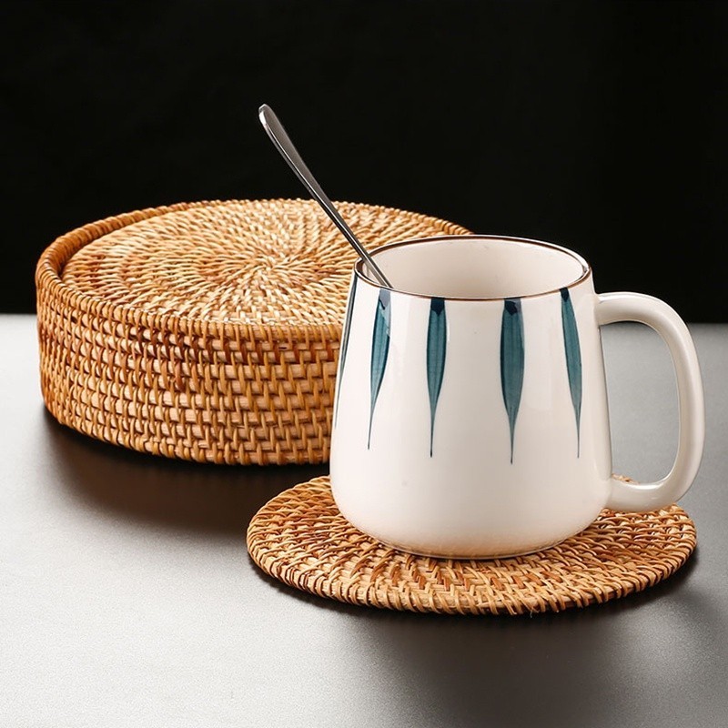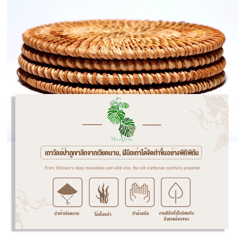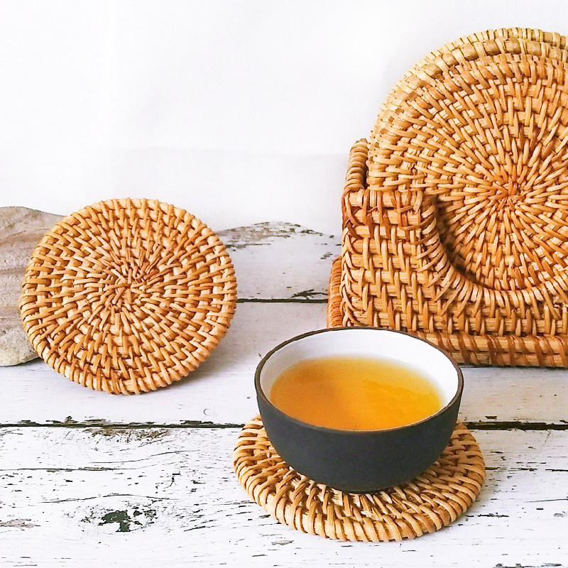 ʚɞ seely.shop ʚɞ💥ส่งไว💥 ทอฤดูใบไม้ร่วงหวายรถไฟเหาะฉนวนกันความร้อนเสื่อกังฟูชุดน้ําชาอุปกรณ์เสริมเสื่อหวาย