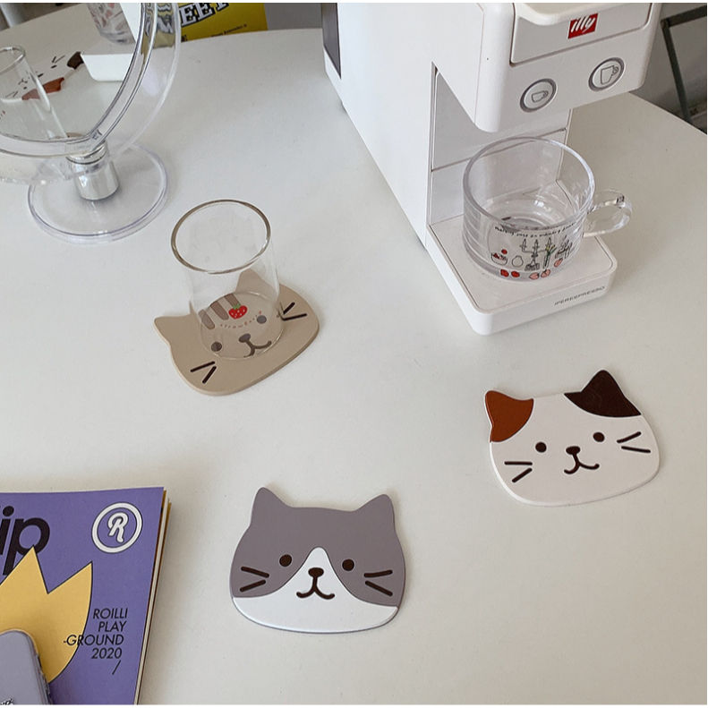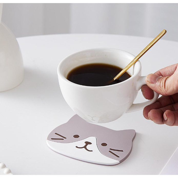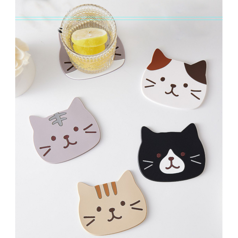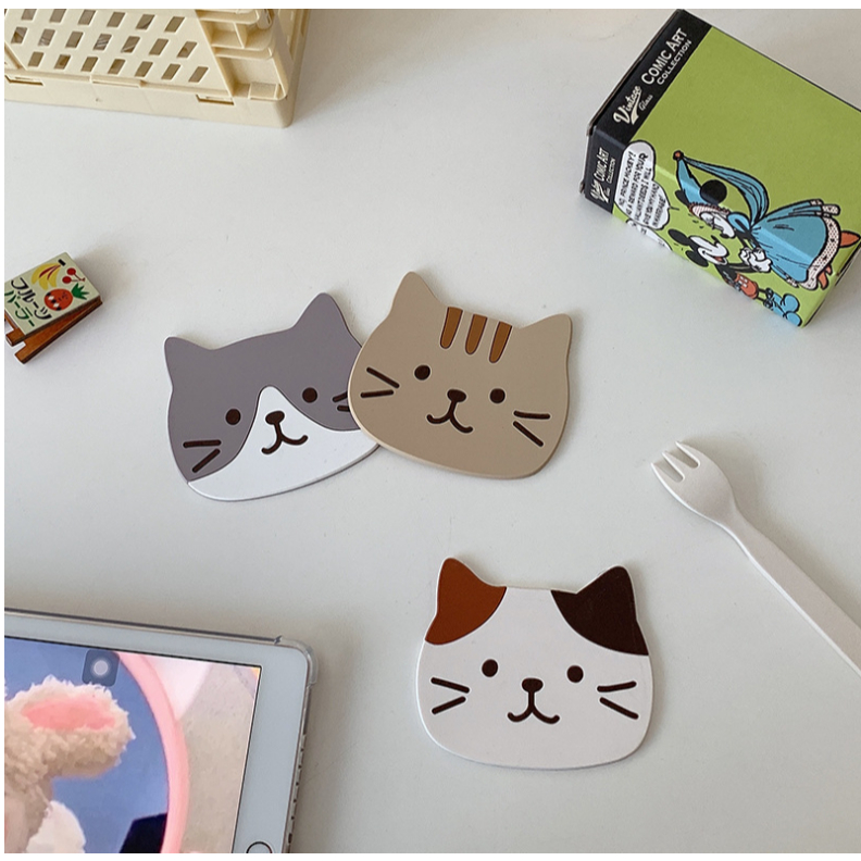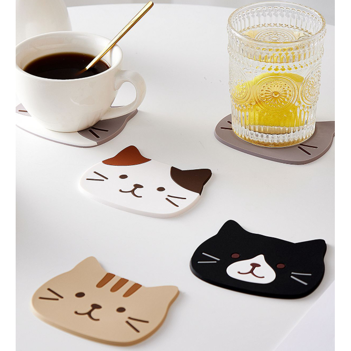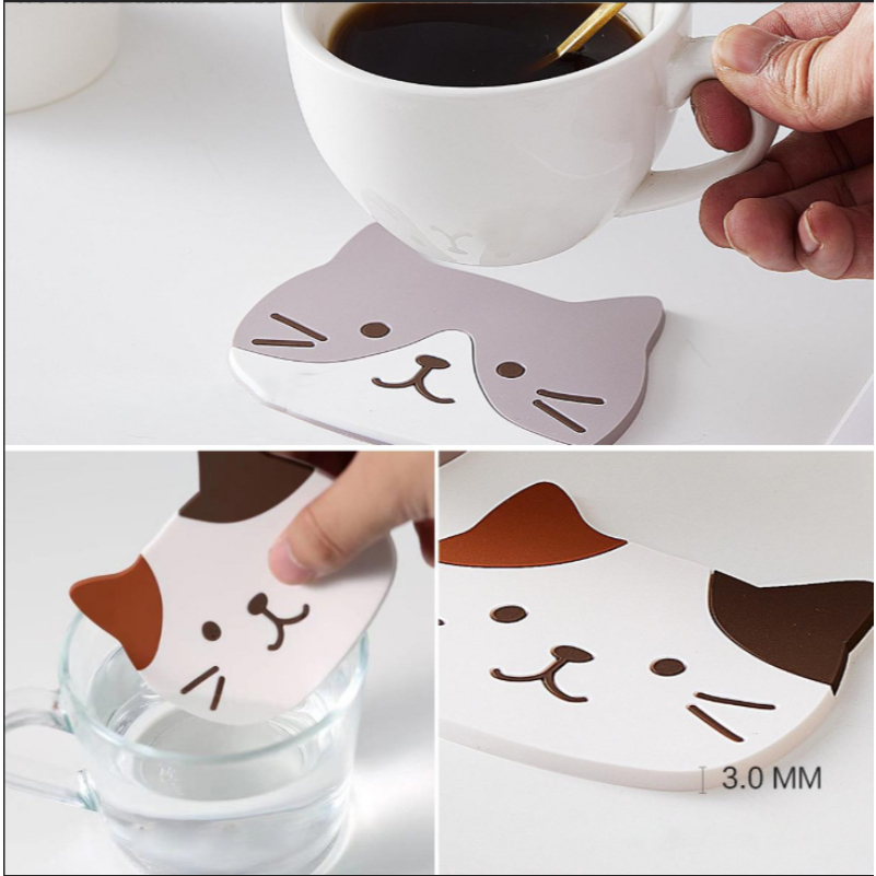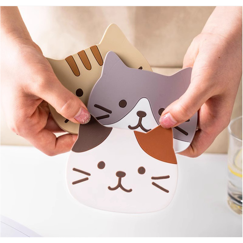 (🇹🇭พร้อมส่ง)ที่รองแก้ว แผ่นรองแก้ว PVC ลายแมว กันความร้อนกันลื่น ขนาด น่ารัก ส่งไว