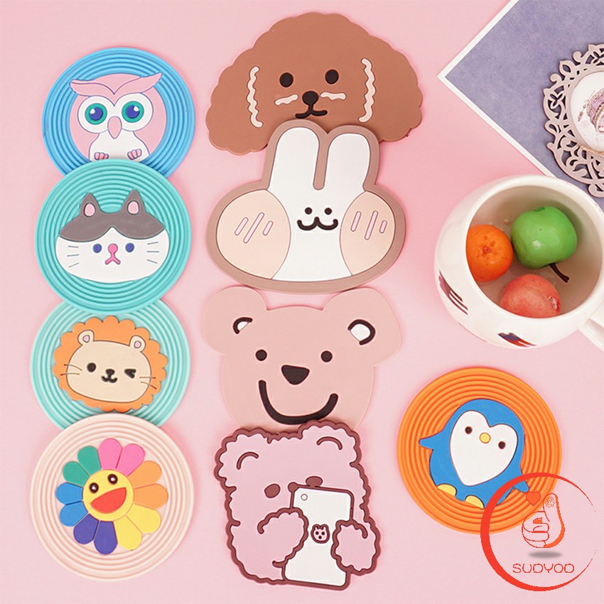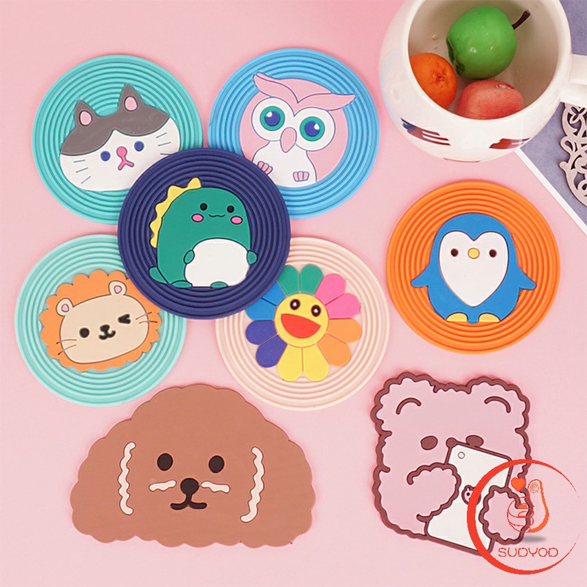 ที่รองแก้ว ยางรองแก้ว ที่รองจาน แบบแผ่นซิลิโคน ลายสีสันสดใส น่ารักๆ