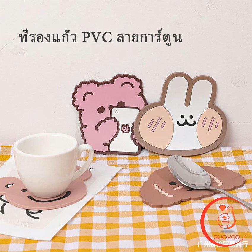 ที่รองแก้ว PVC ล้างได้ ทนความร้อน ลายการ์ตูน วัสดุกันลื่น Cartoon PVC Coaster