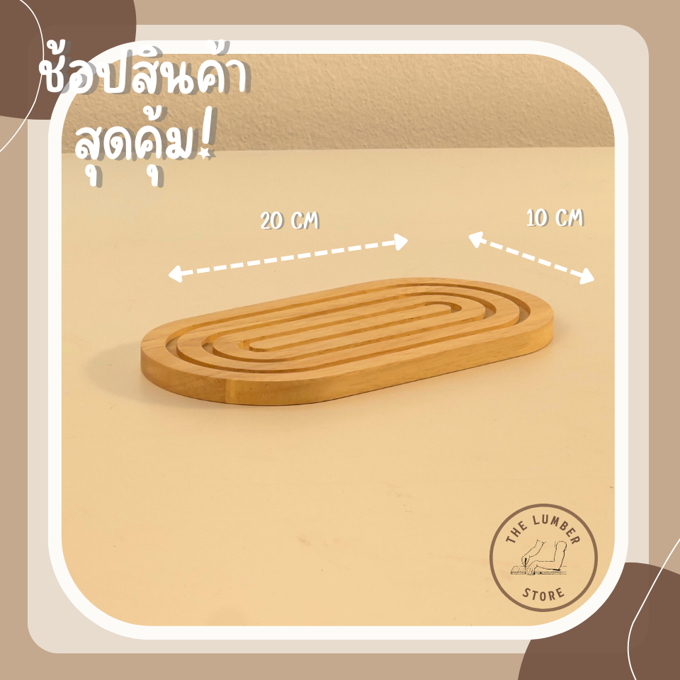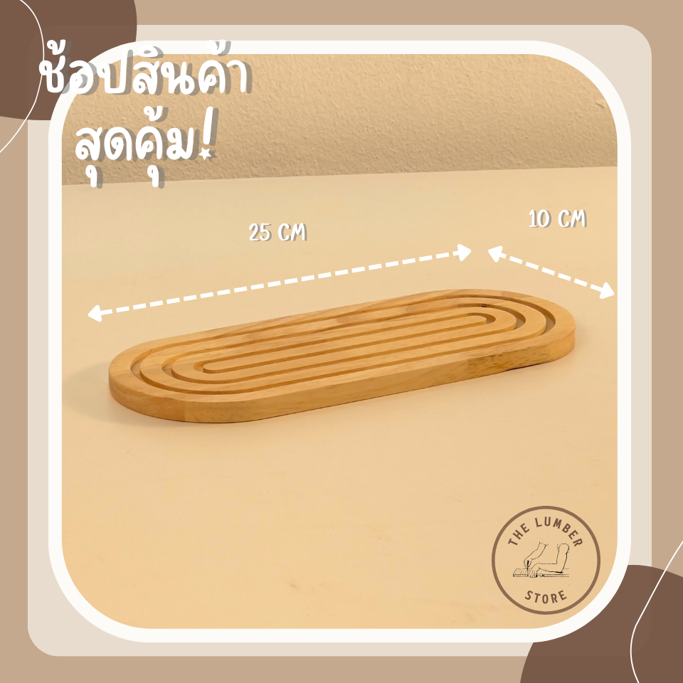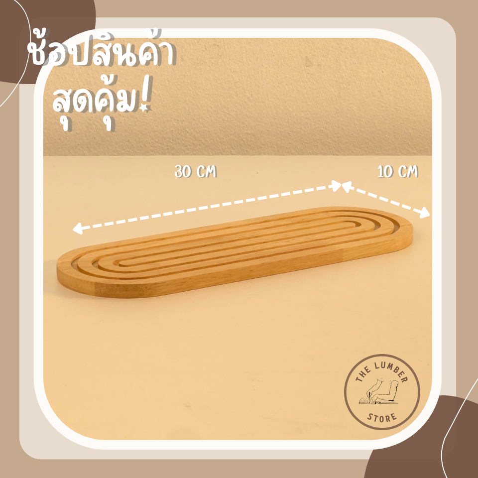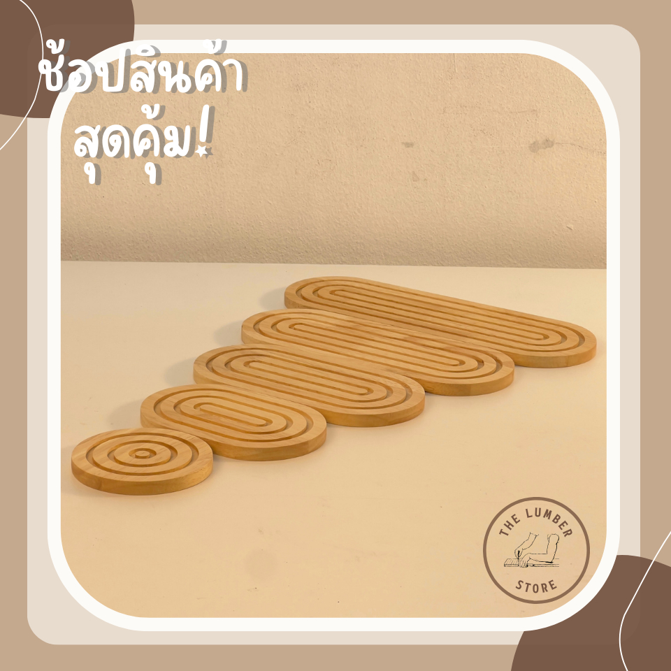 ถาดไม้ รองแก้วน้ำ เซาะร่องทรงกลม ไม้พารา มินิมอล THE LUMBER มี 5 ขนาด กว้าง10 cm ยาว10,15,20,25,30cm
