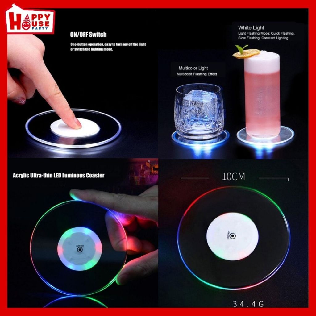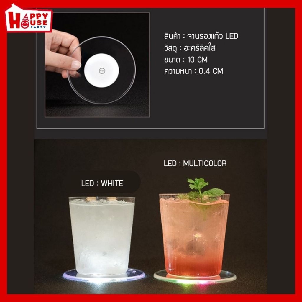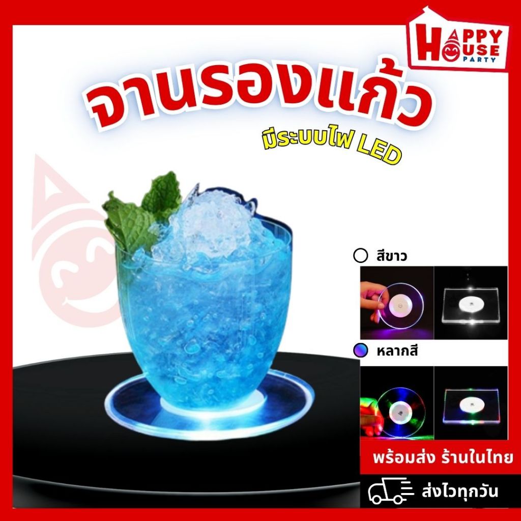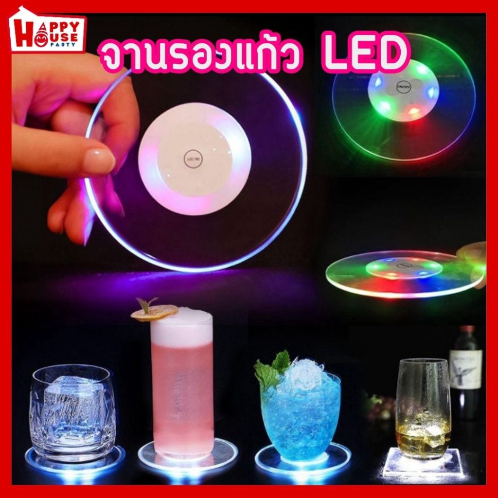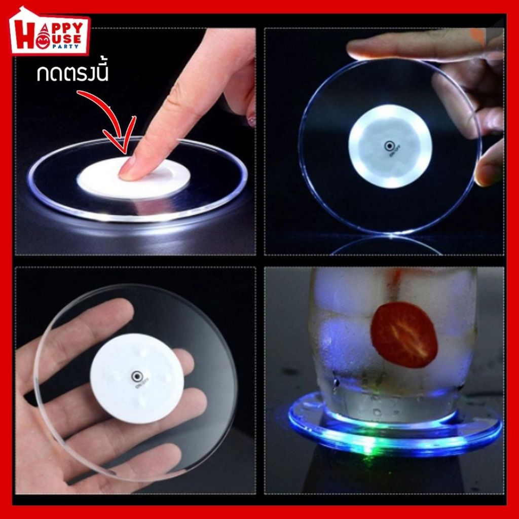 ที่รองแก้ว มีไฟ LED จานรองแก้วอะคริลิค ปรับโหมดแสงได้ วางแก้ว ขวดแก้ว ถ้วย เพิ่มบรรยากาศอันหรูหรา