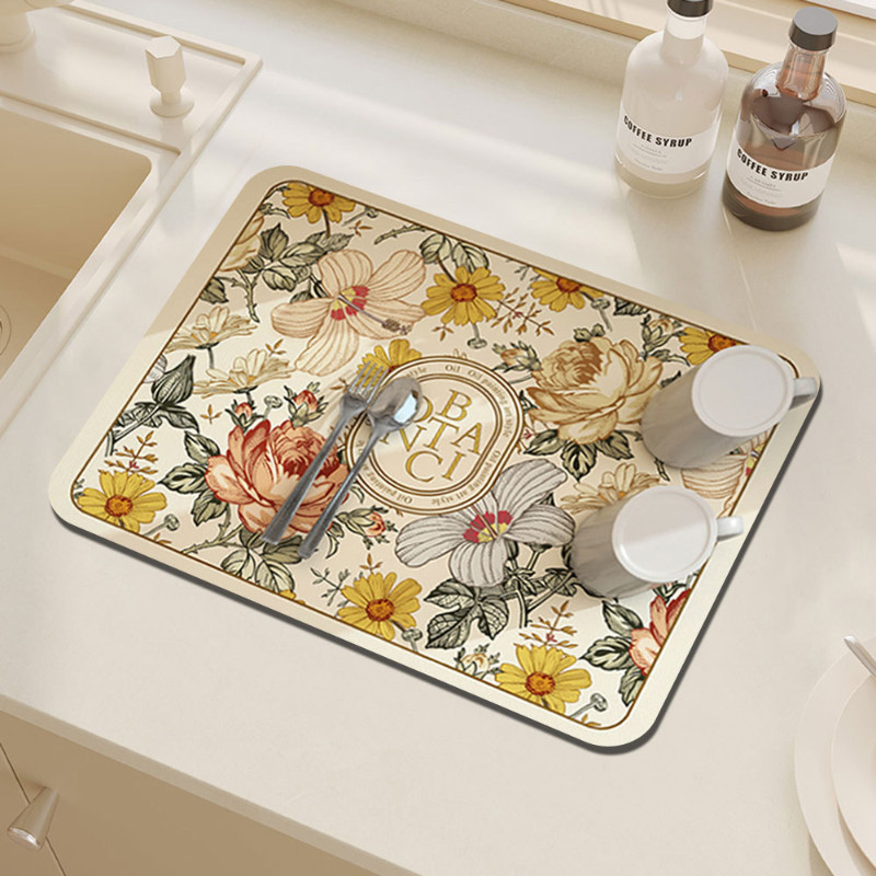 พร้อมส่ง แผ่นดูดซับน้ํา แผ่นรองจาน ทนความชื้น แบบแห้งเร็ว 40×60CM ป้องกันการลวก สไตล์ยุโรป