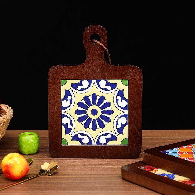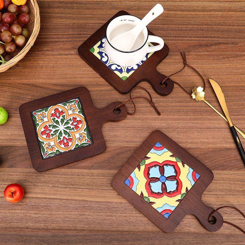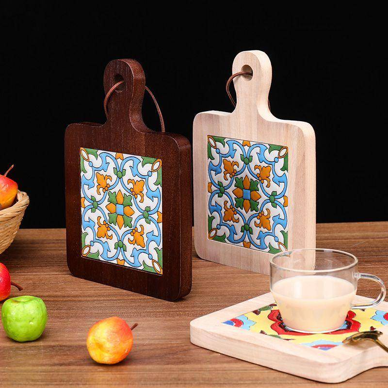 แผ่นฉนวนกันความร้อน ด้ามจับไม้เนื้อแข็ง แฮนด์เมด สไตล์เรโทร สําหรับรองหม้อ กระทะ