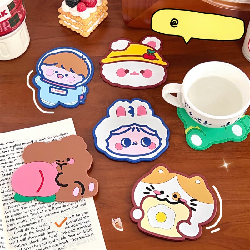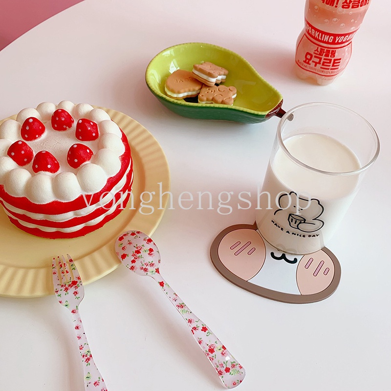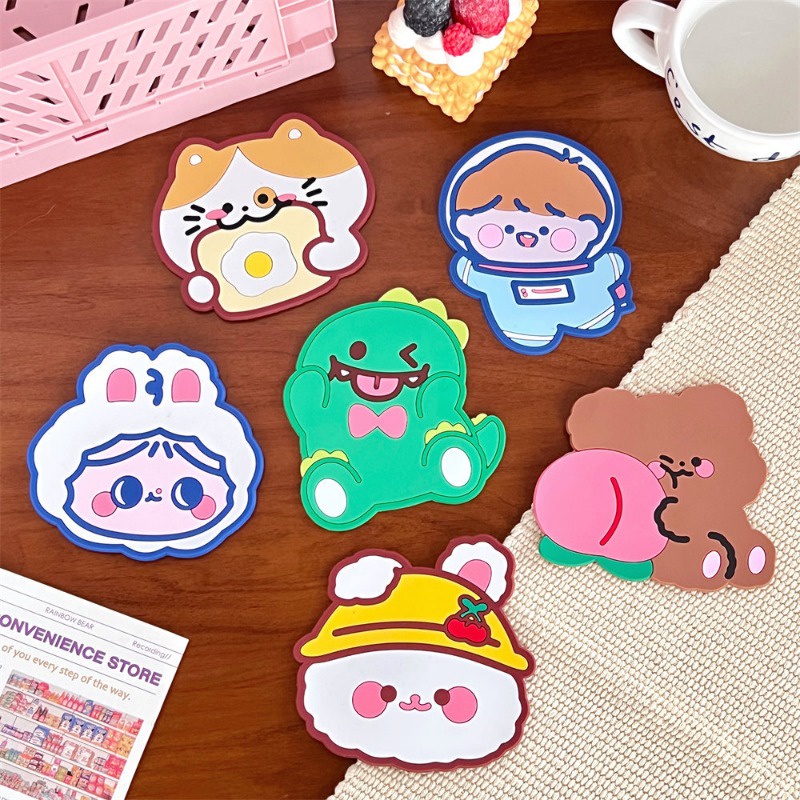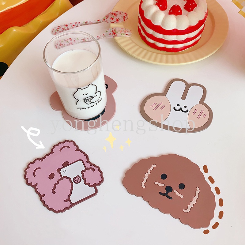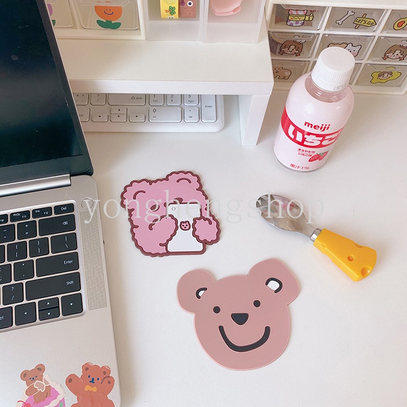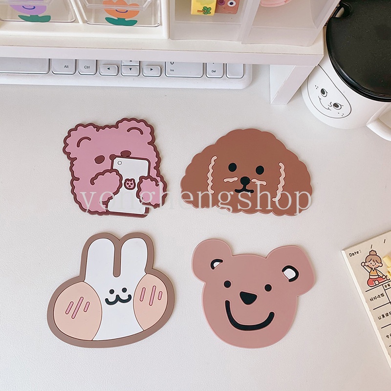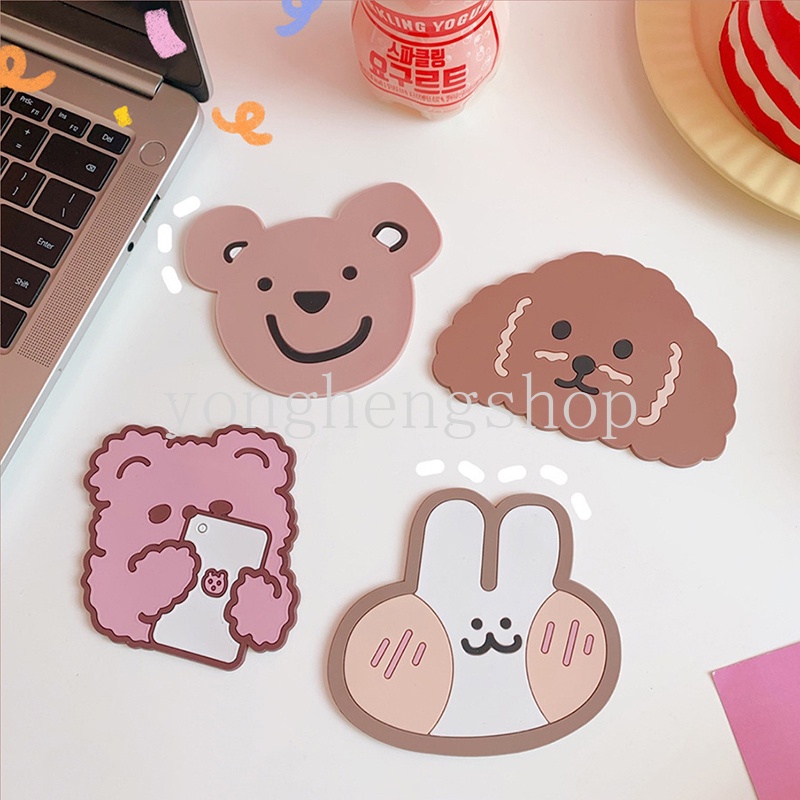 แผ่นรองแก้ว กันลื่น ลายการ์ตูนหมี กระต่ายน่ารัก กันน้ํา สําหรับตกแต่งบ้าน ออฟฟิศ