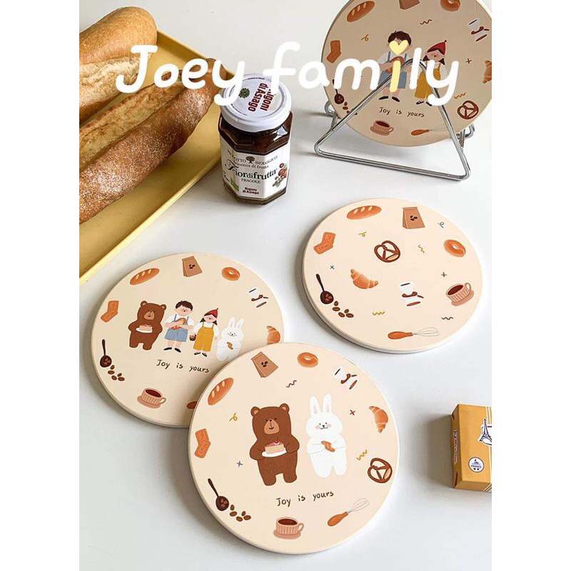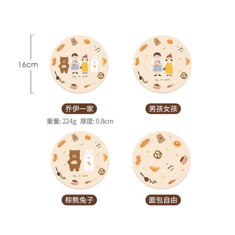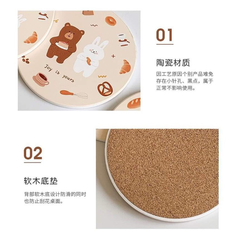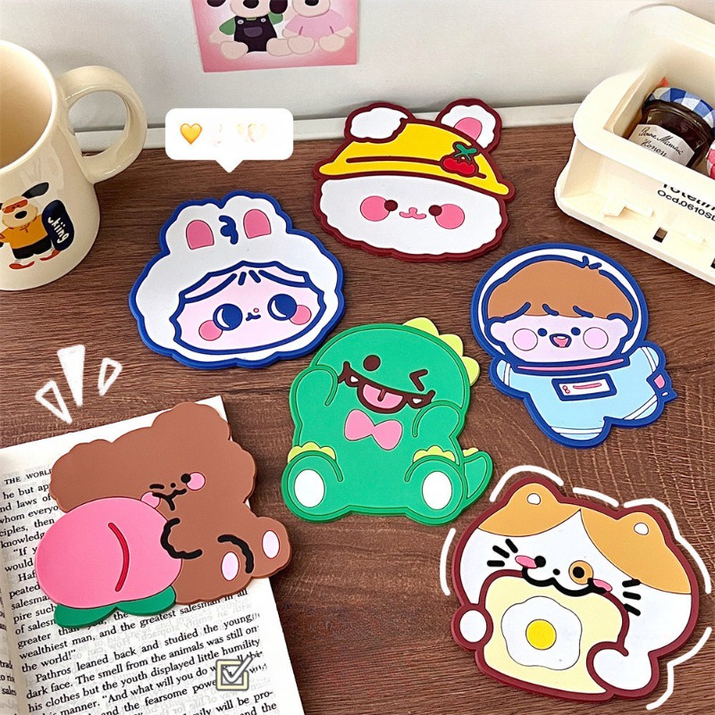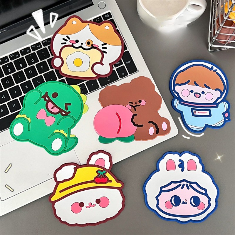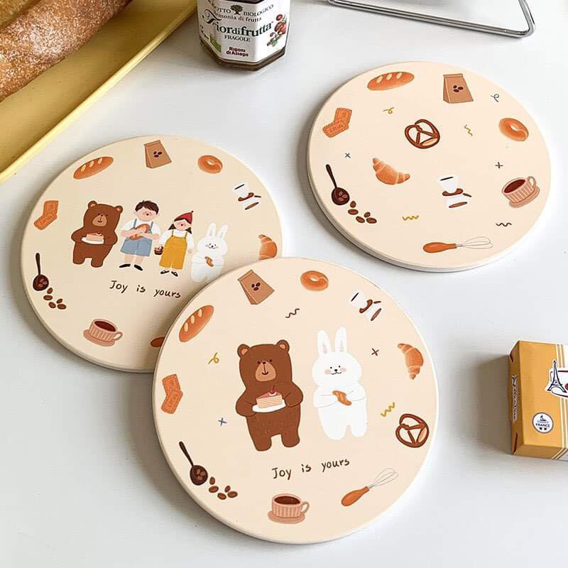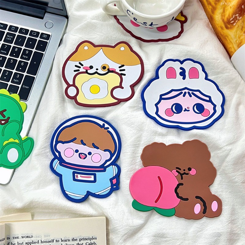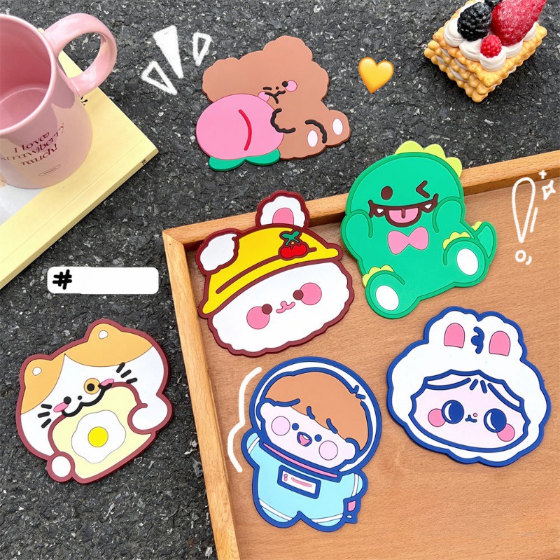 แผ่นรองแก้ว กันลื่น ลายการ์ตูนหมี กระต่ายน่ารัก กันน้ํา สําหรับตกแต่งบ้าน ออฟฟิศ