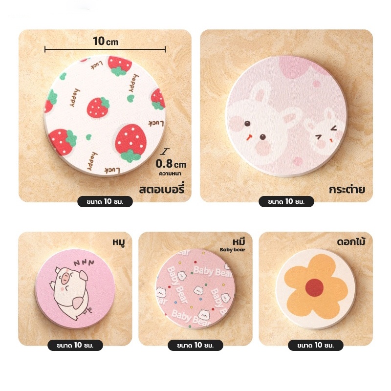 แผ่นรองแก้ว ขนาด 10 x 10ซม กันลื่น ลายการ์ตูนน่ารัก
