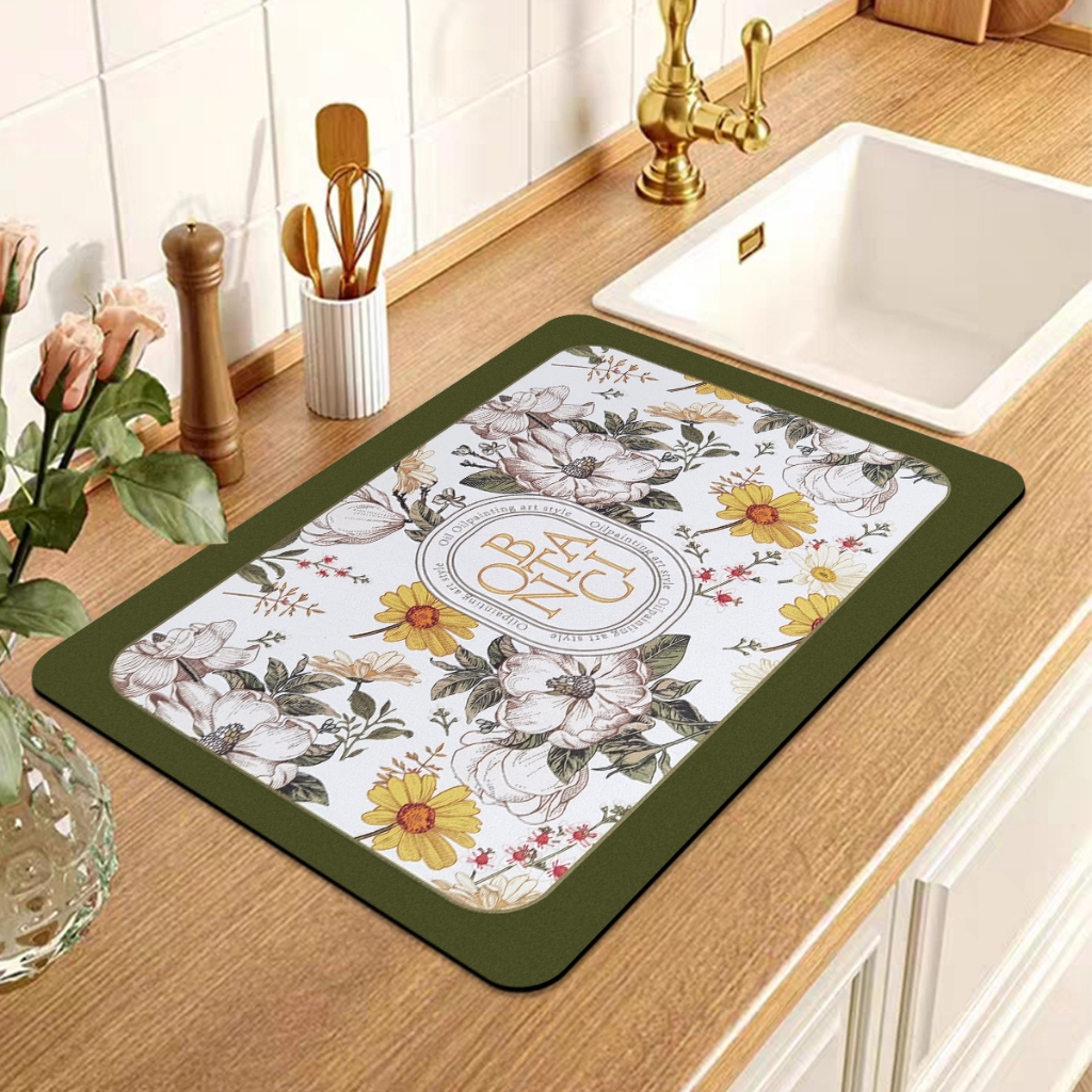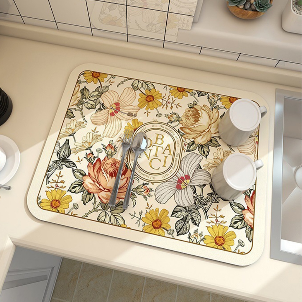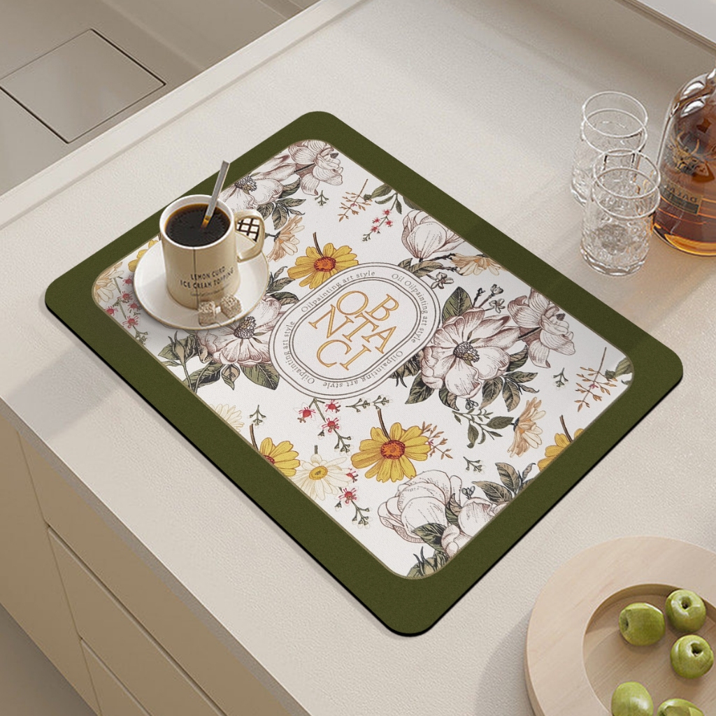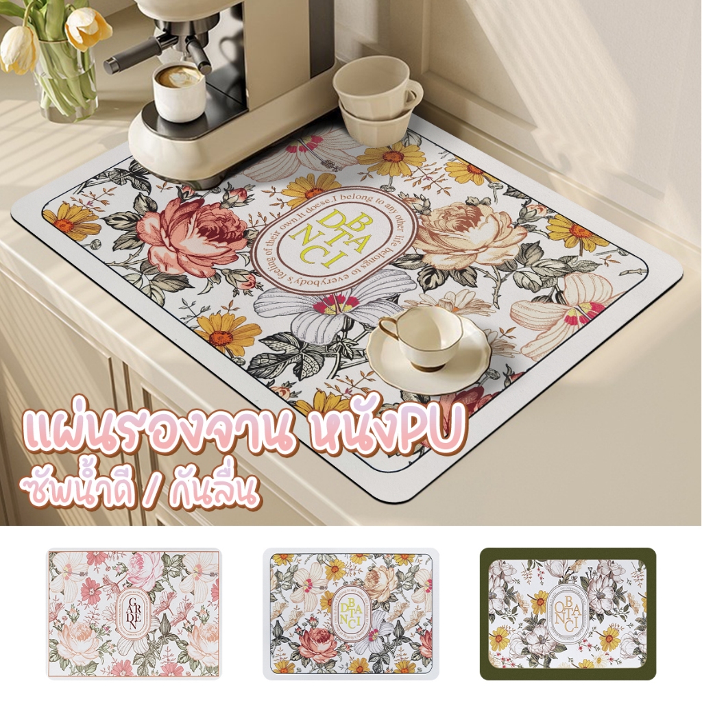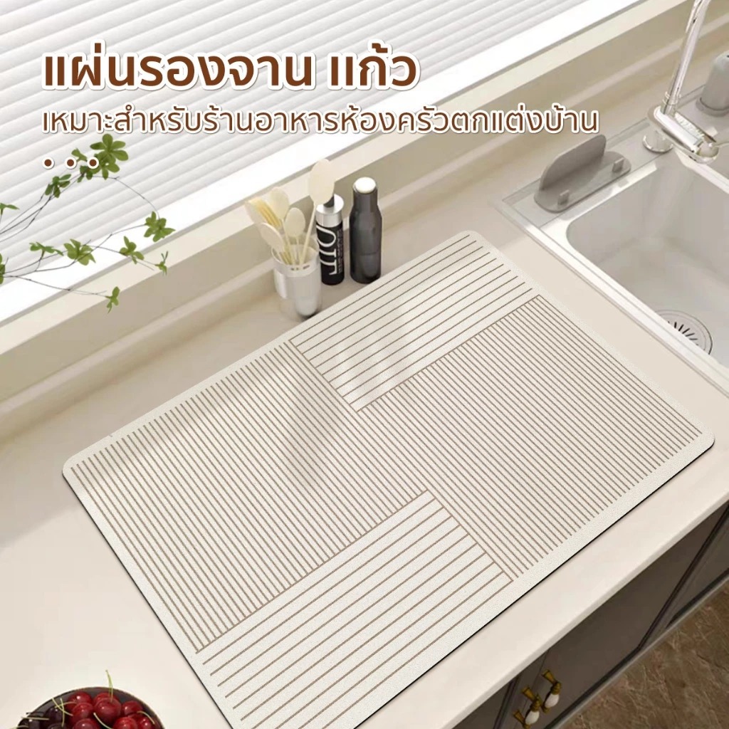 แผ่นเสื่อดูดซับน้ํา dry mat แผ่นรองจาน ที่้รองจาน แผ่นรองแก้ว ดูดซับน้ําได้ดี กันลื่น กันกระเด็น