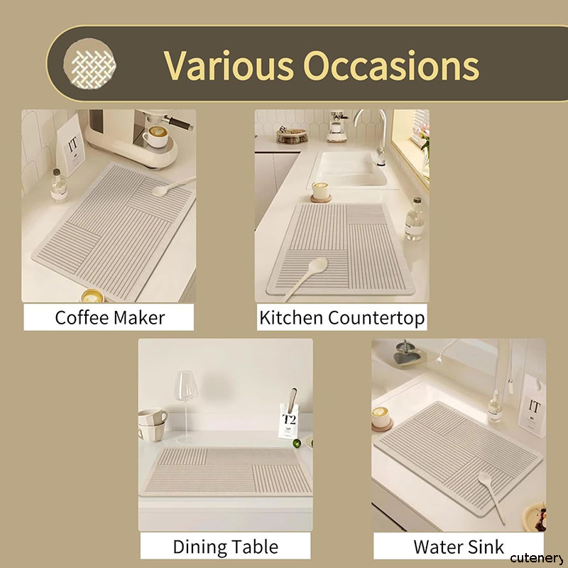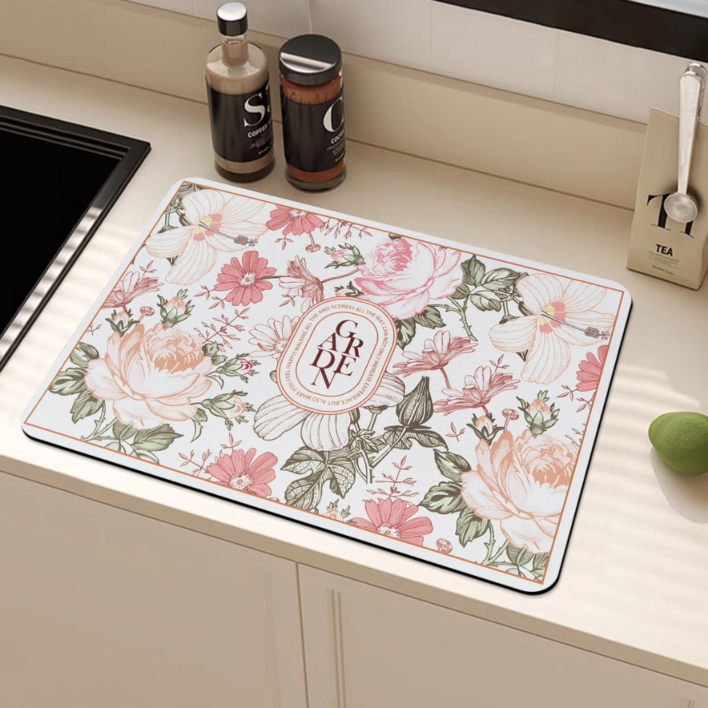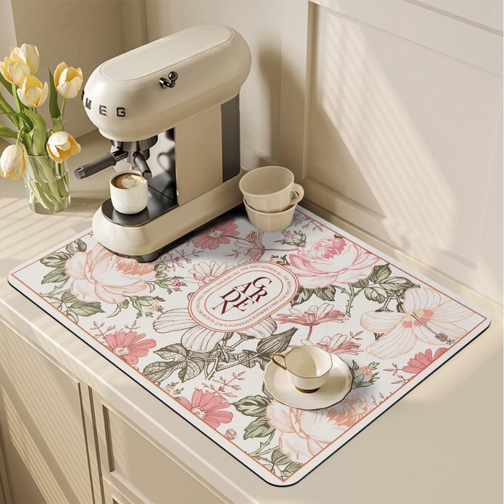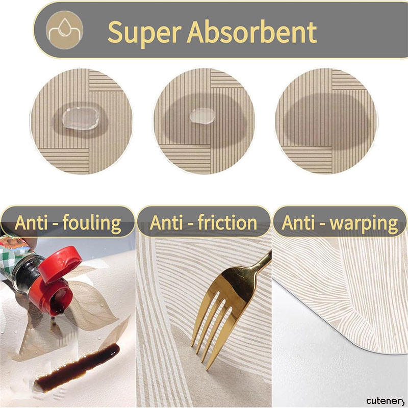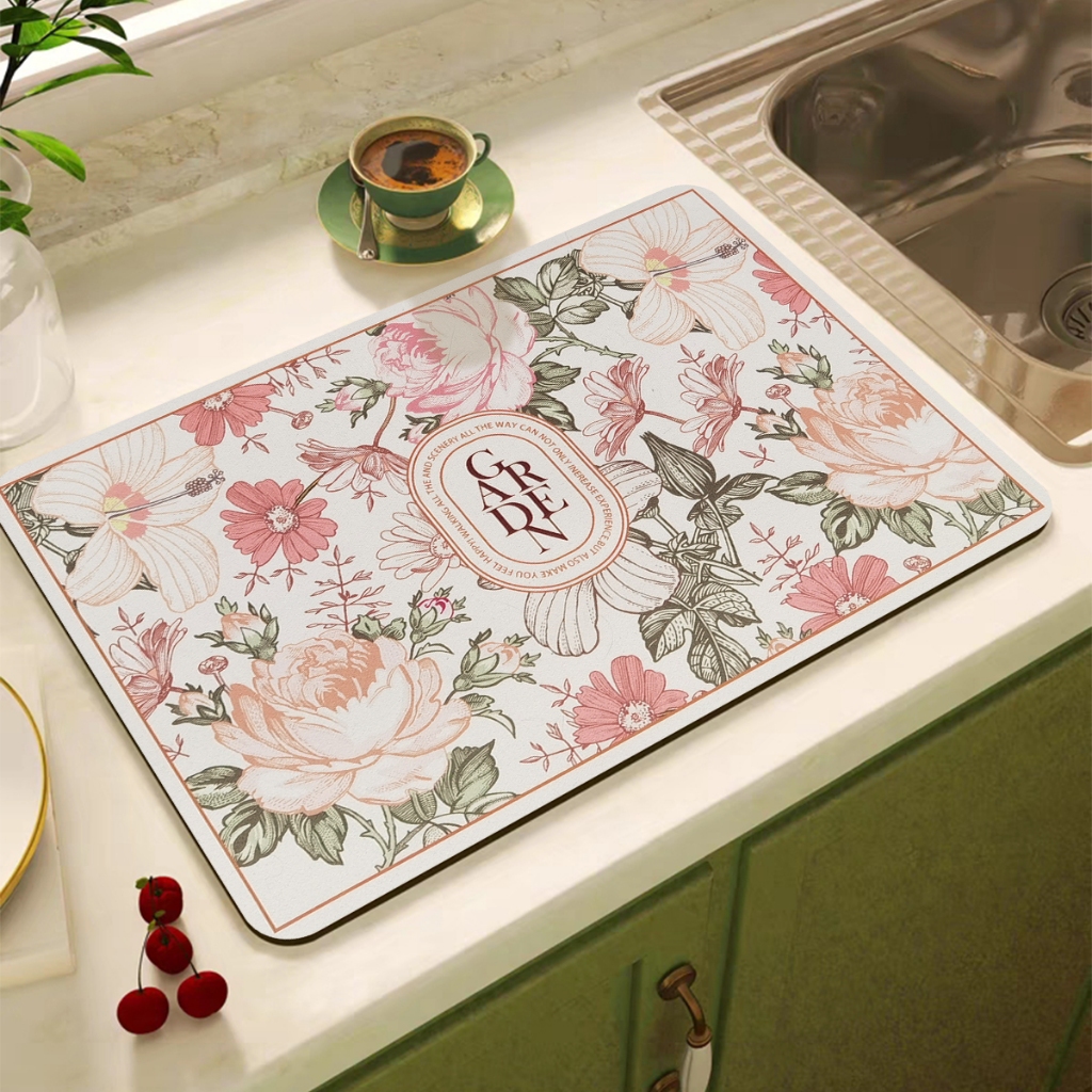 แผ่นเสื่อดูดซับน้ํา dry mat แผ่นรองจาน ที่้รองจาน แผ่นรองแก้ว ดูดซับน้ําได้ดี กันลื่น กันกระเด็น