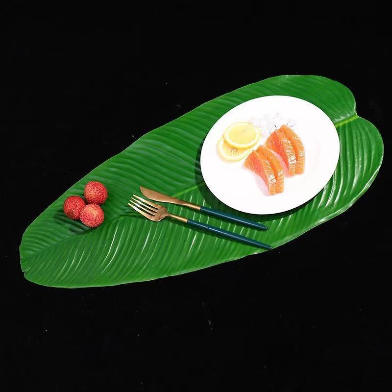 ใบตองปลอมรองอาหาร ใบตองเทียม ใบประดับโต๊ะ ใบสวยเหมือนจริง สีสดดีมากมาก สินค้าไม่มีกลิ่นพลาสติก