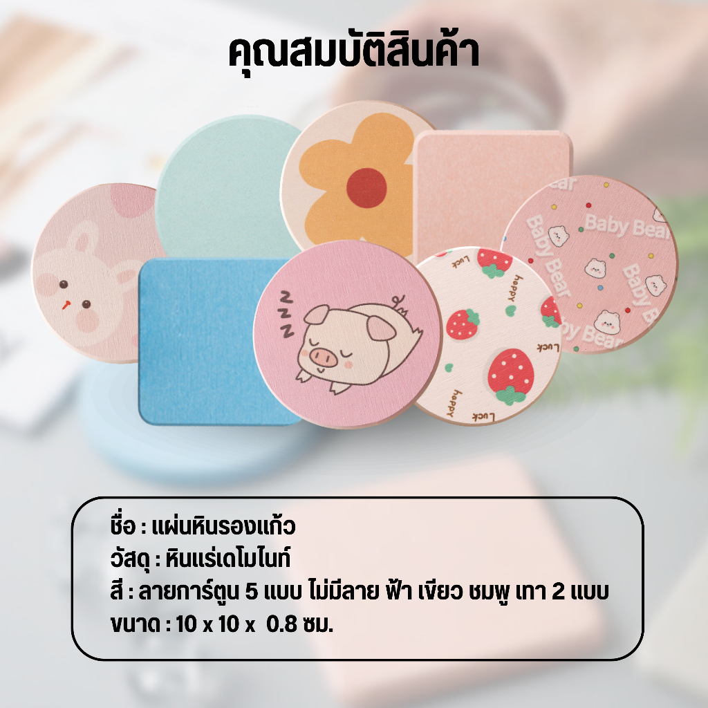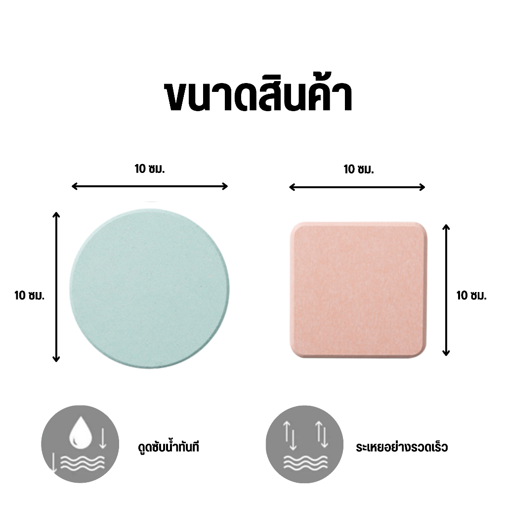 แผ่นหินรองแก้ว กันลื่น แห้งไว ซึมซับน้ำไว ขนาด 10 x10 ซม.