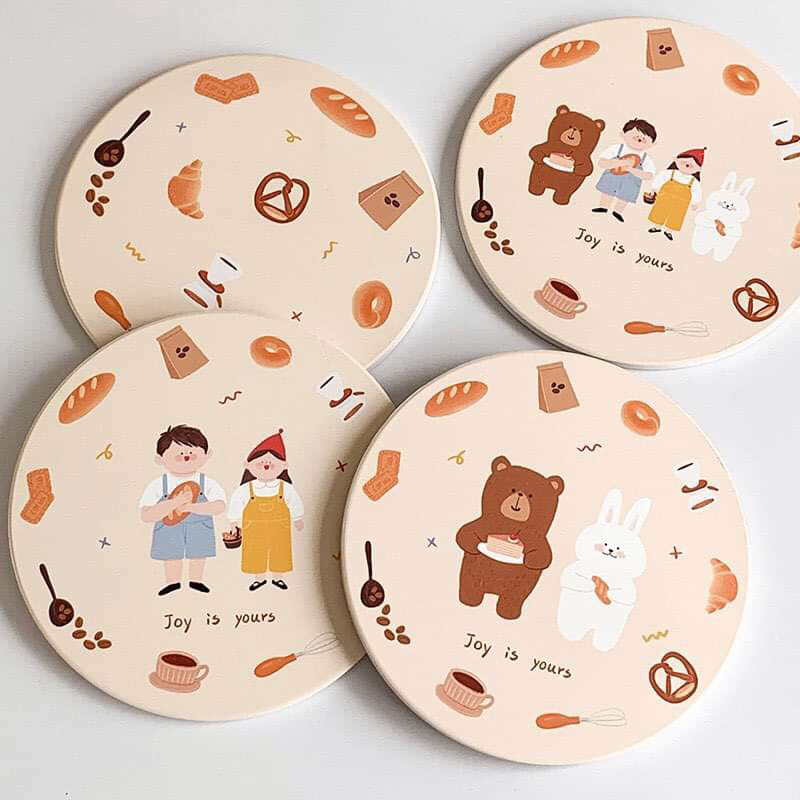 แผ่นรองแก้วกาแฟ กันลื่น ทนความร้อน ลายการ์ตูน