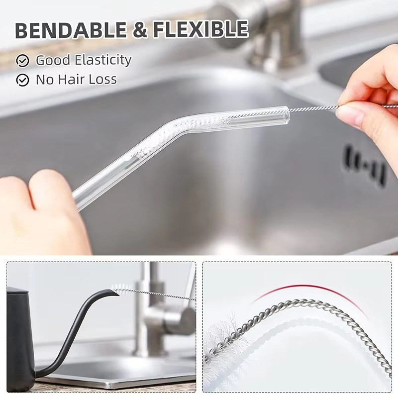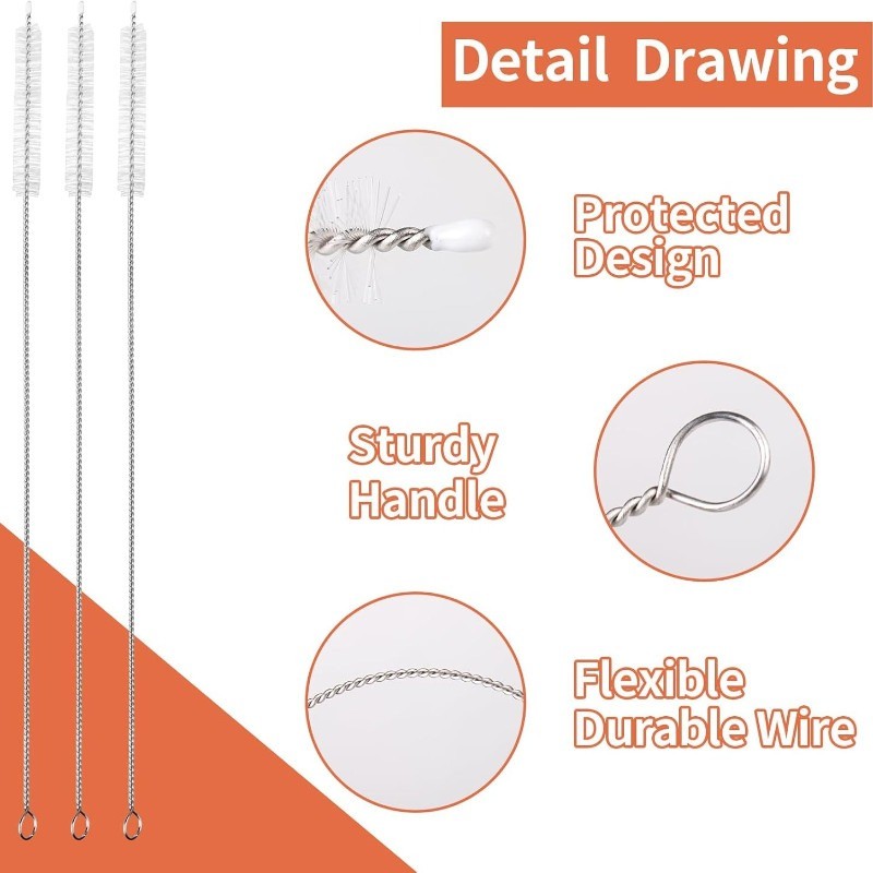 10ชิ้น24เซนติเมตรนํามาใช้ใหม่ฟางทําความสะอาดแปรง/ไนล่อนผมนุ่มแก้วหลอดทําความสะอาดแปรง