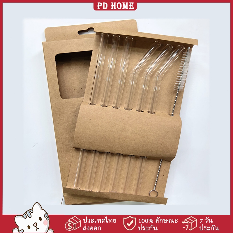 [COD] 7 ชิ้น หลอดแก้วดูดน้ำ ใช้ซ้ำได้ และแปรงทําความสะอาด ทนความร้อน หลอดแก้ว สําหรับดื่มเครื่องดื่ม สมูทตี้