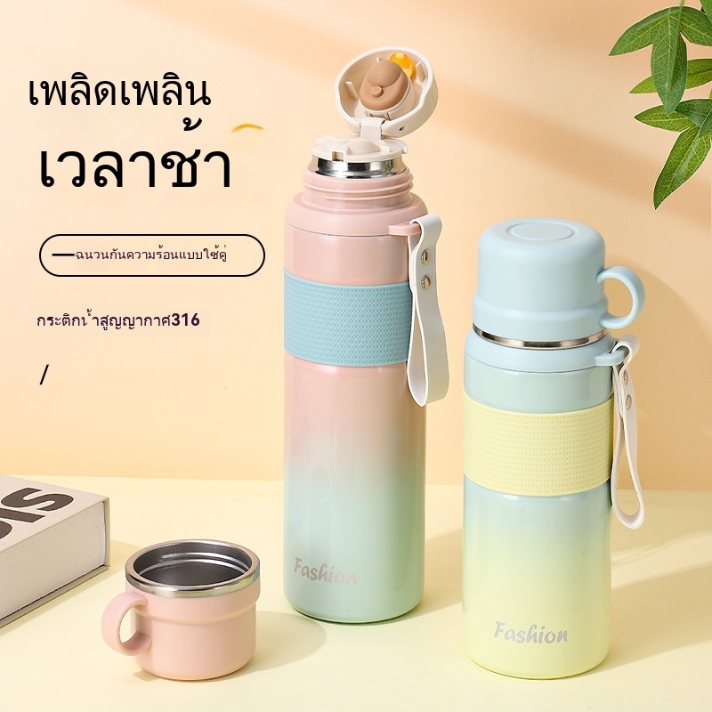 【ของขวัญฟรี】แก้วสแตนเลส 316 แก้วเก็บความเย็น 600 มล. แก้วหลอดพกพาสำหรับกลางแจ้ง