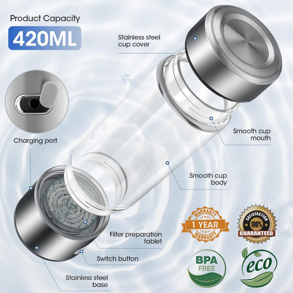 【COD ท้องถิ่น + การจัดส่ง 2 วัน】ขวดน้ําไฮโดรเจนขวดน้ําจักรยานพร้อมเทคโนโลยี PEM และ SPE สูงสุด 1300PPB, เครื่องทําเครื่องกําเนิดไฟฟ้าน้ําไฮโดรเจนแบบพกพา, เครื่องสร้างน้ําแก้วเทคโนโลยีใหม่