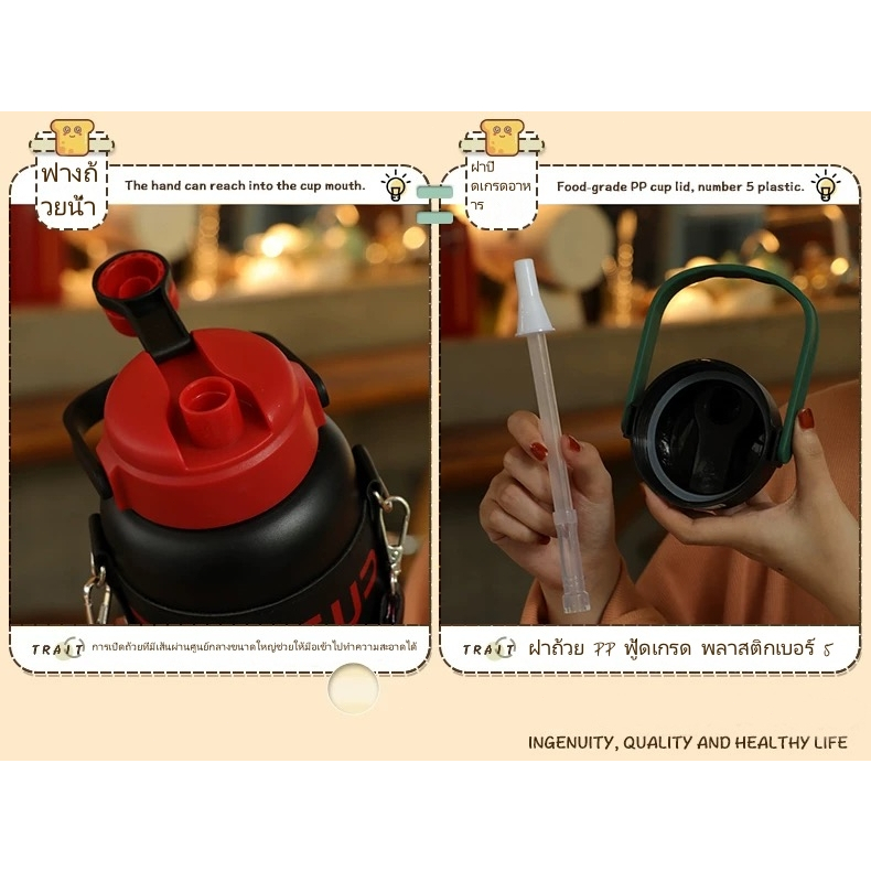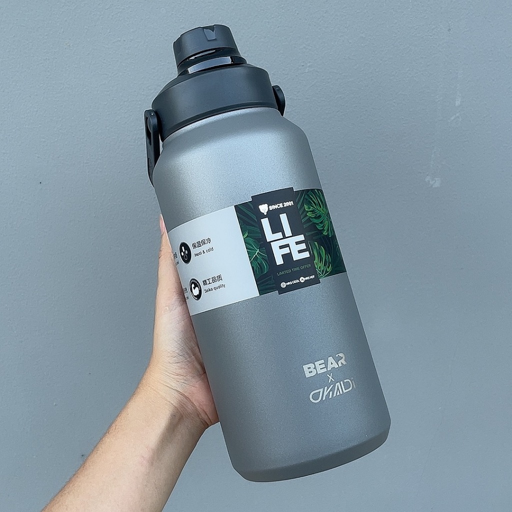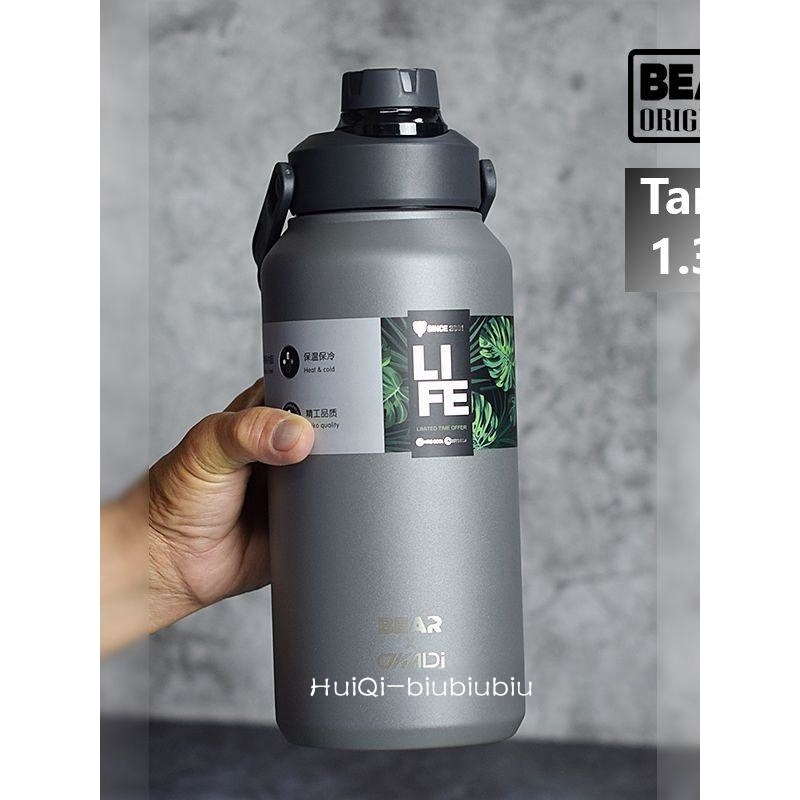 【COD】BEAR Tank 1.3 ลิตร (Sus316) ขวดน้ำร้อนและเย็นเคลือบผงพร้อมหลอดและที่จับ ความจุขนาดใหญ่กลางแจ้ง (มีแผ่นกันลื่นด้านล่