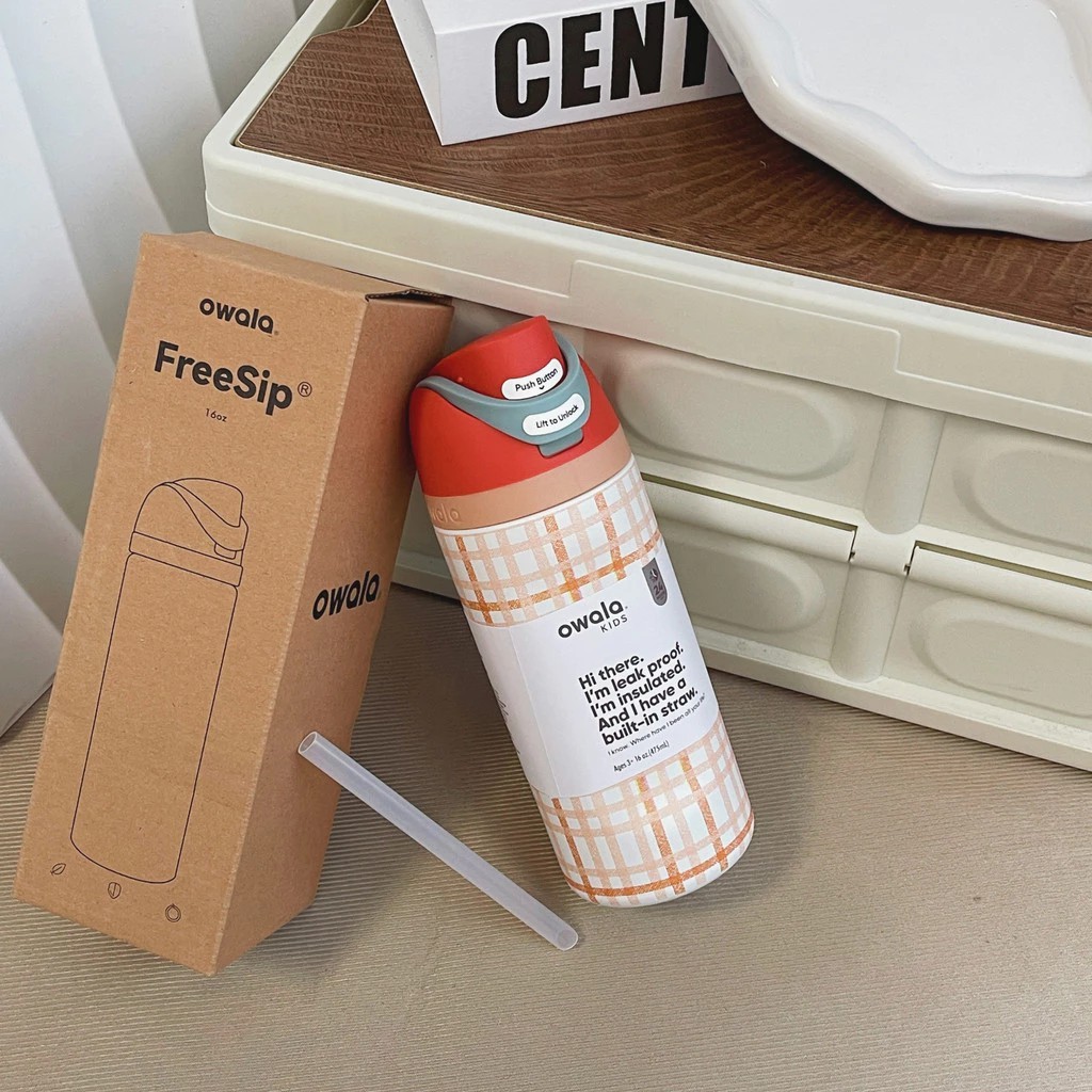 [ส่งไววันนี้] Owala Freesip 16oz ขวดน้ำเด็ก เก็บความเย็น 12 ชม. ✅ กันรั่ว 100% ฟางซิลิโคนปลอดภัย พกพาง่าย