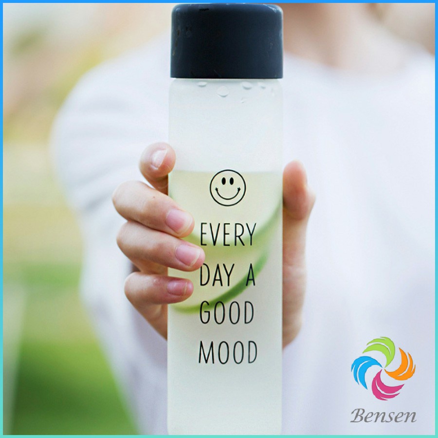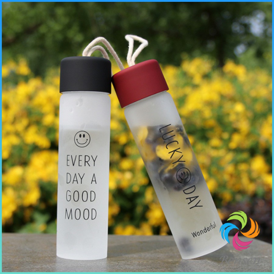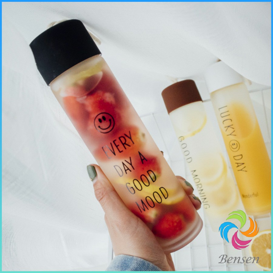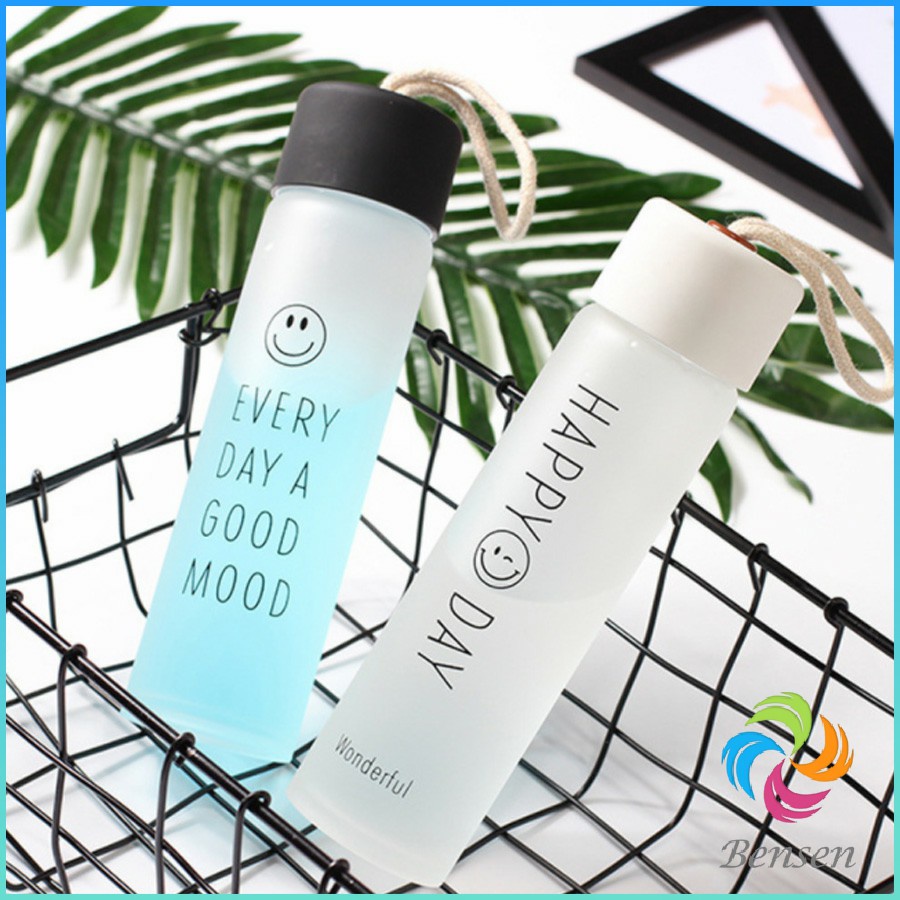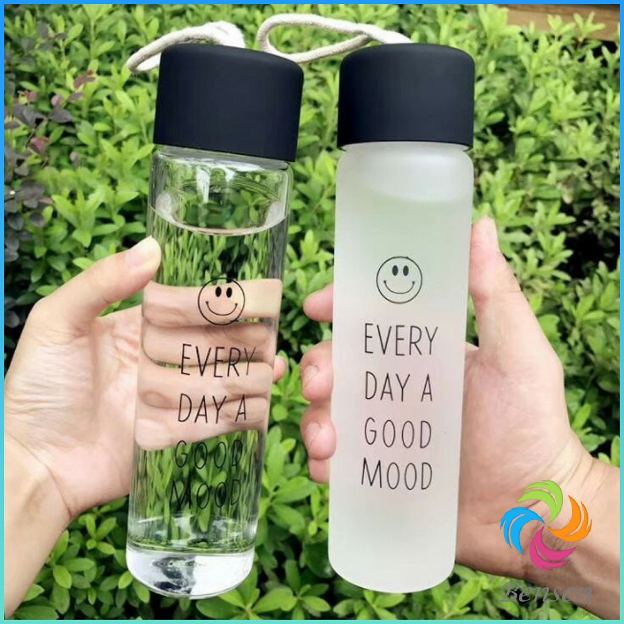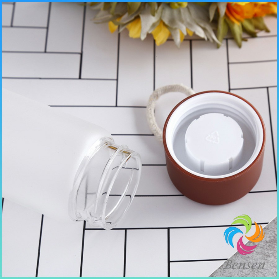 Bensen ขวดแก้วใส่น้ำดื่มพกพา กระบอกใส่น้ำ 350 ml มีสายคล้องมือ พกพาสะดวก Portable glass