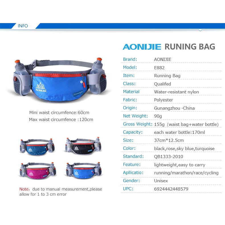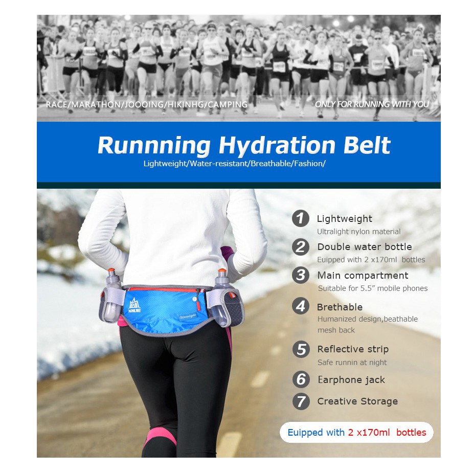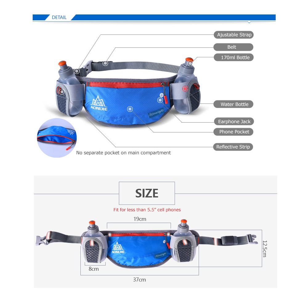 Aonijie เข็มขัดไฮเดรชั่นวิ่งจ๊อกกิ้ง พร้อมขวด 170 มล. 2 ชิ้น กระเป๋าคาดเอว ปรับได้ แฮนด์ฟรี E882